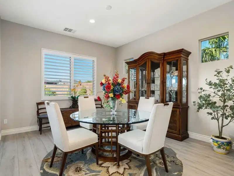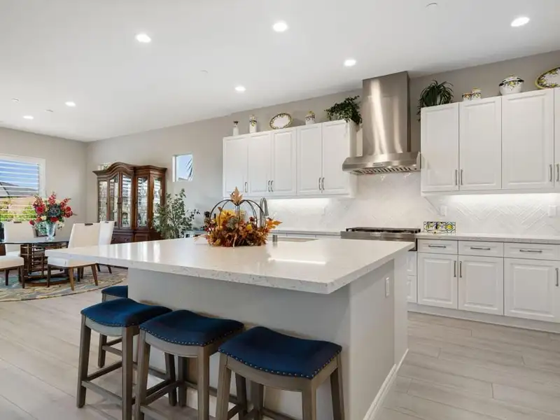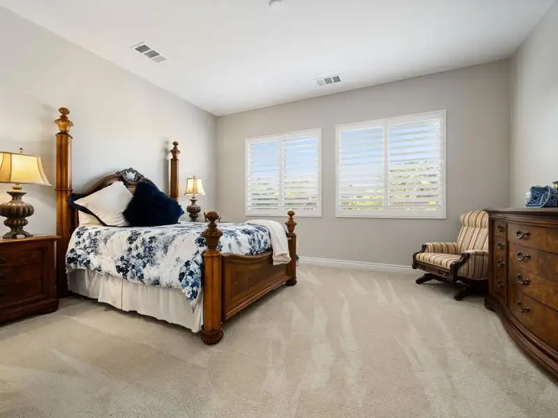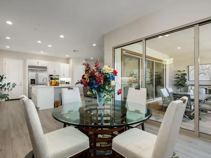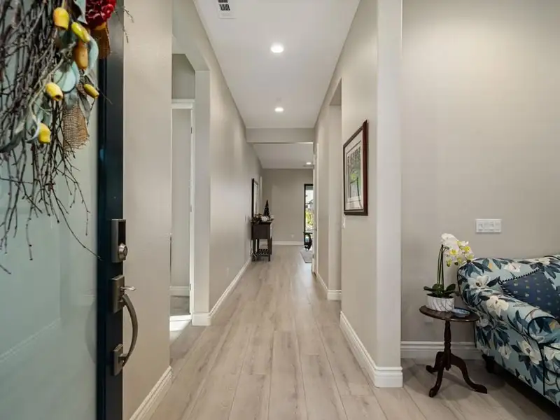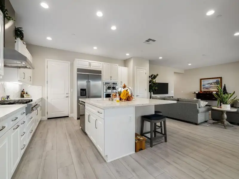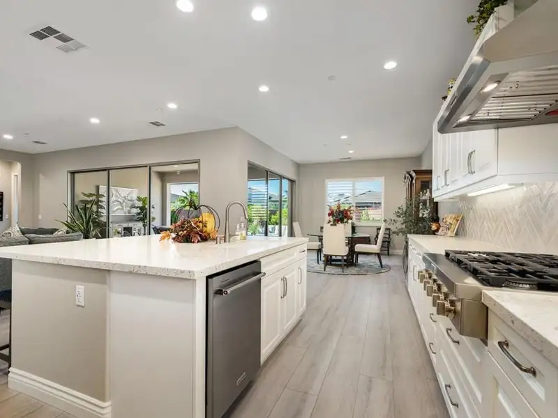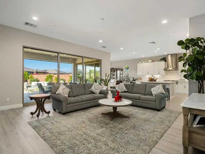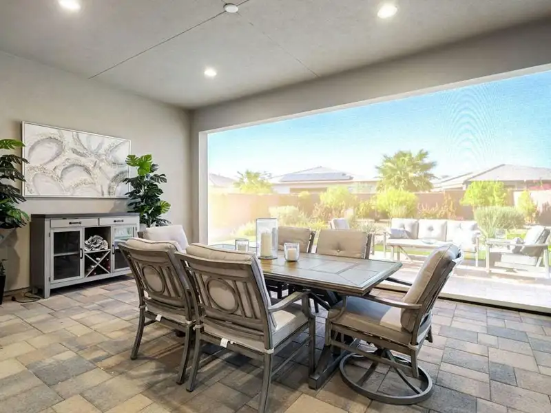 Welcome to this impeccably maintained and thoughtfully upgraded Proclaim Plan residence, ideally located behind the private gates of the prestigious Trilogy Polo Club--a premier active lifestyle community. From the moment you arrive, the curb appeal impresses with a beautifully designed paver driveway leading to a custom smoked-glass front entry door, setting the tone for the elegance found within. This spacious and versatile floor plan features a dedicated 3 bedroom, 2.5 bath with den/office that can easily serve as a fourth bedroom, seamlessly flowing into a light-filled great room that exemplifies open-concept living. Soaring ceilings, wide-plank flooring, 5-inch+ baseboards, plantation shutters, and abundant natural light create an ambiance of casual sophistication. Dual sets of pocket sliding glass doors extend the living space outdoors, revealing an expansive covered patio adorned with a paver deck and equipped with drop-down sun/privacy shades--ideal for al fresco dining or entertaining guests in style. The adjacent formal dining area complements the gourmet kitchen, which showcases quartz countertops, a large prep island with bar seating, custom backsplash, ample white cabinetry with brushed nickel hardware, and a suite of high-end stainless steel appliances, including a built-in refrigerator, wall ovens, 6-burner gas cooktop with a custom range hood. The private primary suite serves as a tranquil retreat, featuring a generously sized bedroom, luxurious en suite bath with dual vanities, quartz surfaces, a walk-in closet, and a striking floor-to-ceiling tiled walk-in shower. Multiple guest accommodations provide comfort and privacy for visitors, while a separate laundry room with built-in cabinetry and a utility sink adds convenience. Additional enhancements include 15 solar panels for energy efficiency, a golf cart garage, and professionally designed low-maintenance landscaping that creates a serene outdoor atmosphere. This exceptional home is the epitome of luxury desert living--schedule your private tour today to experience it firsthand.