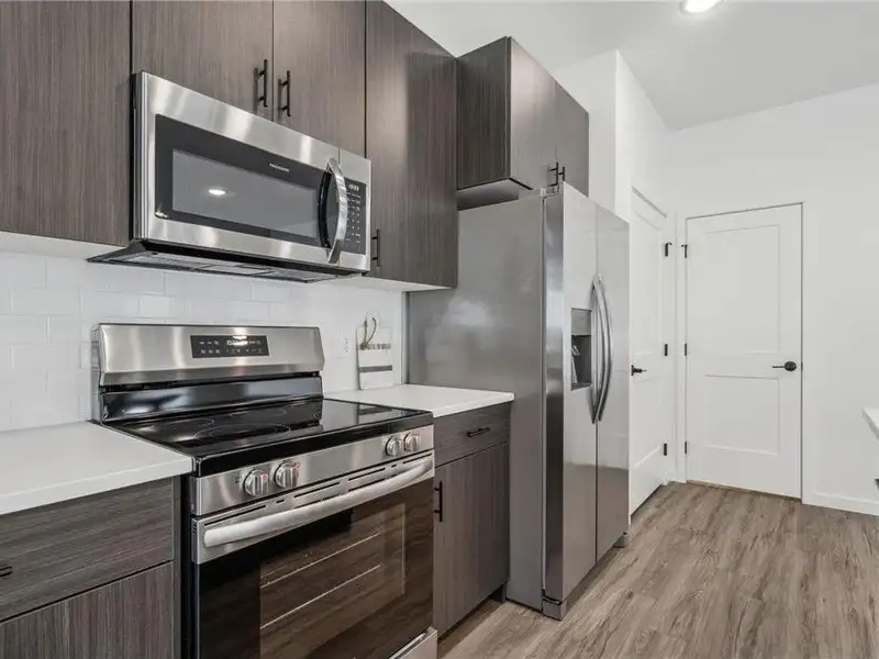 - Stainless steel appliances and granite countertops