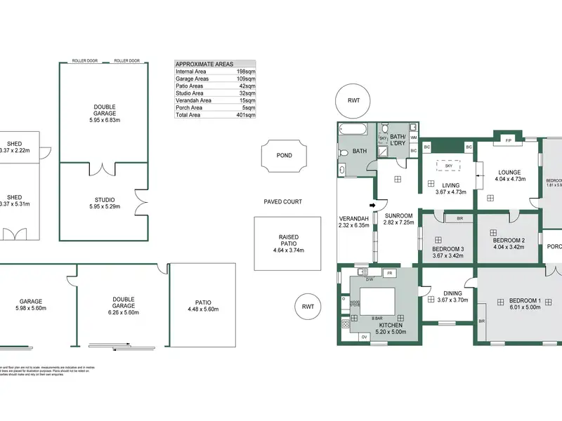 - Extensive garaging with workshop and powered bays