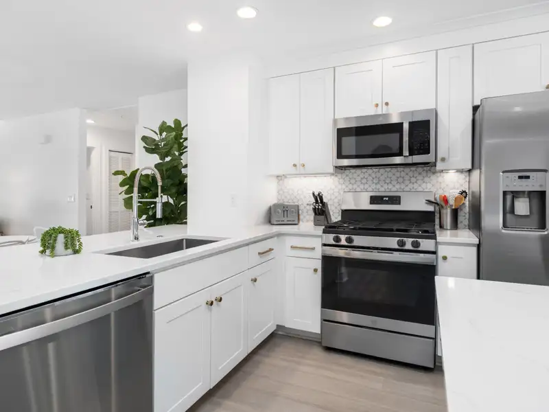 The three-bedroom, two-bath layout features a spacious open and updated kitchen with slow-close custom cabinetry, new quartz countertops throughout including island, eat-in bar and coffee/beverage station. Thoughtful updates include new fixtures, lighting and appliances. A full laundry area adds everyday convenience.