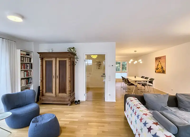 As soon as you enter, you can feel the special feeling of living: light-flooded rooms, fine floor coverings, partially enlarged window areas and new wooden staircases create an ambience that harmoniously combines warmth and modernity.