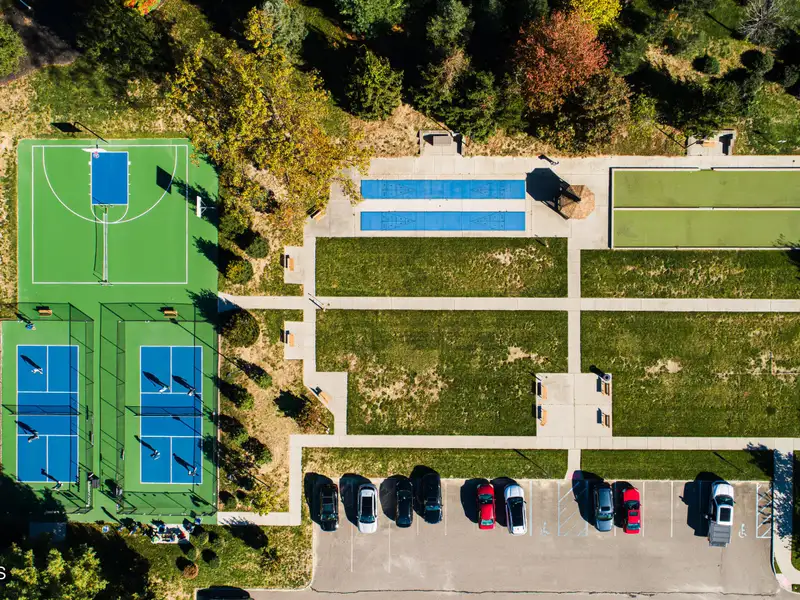 - Fitness center and tennis courts