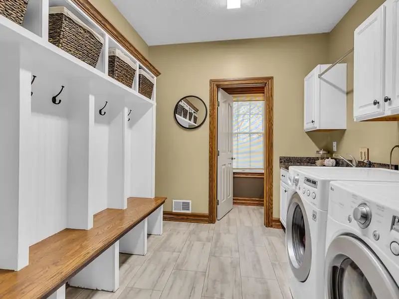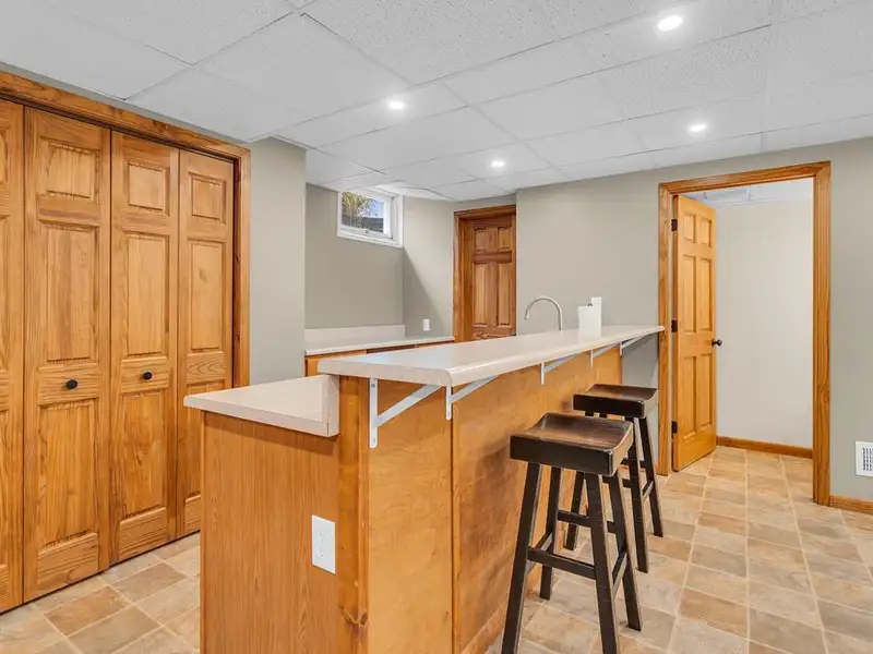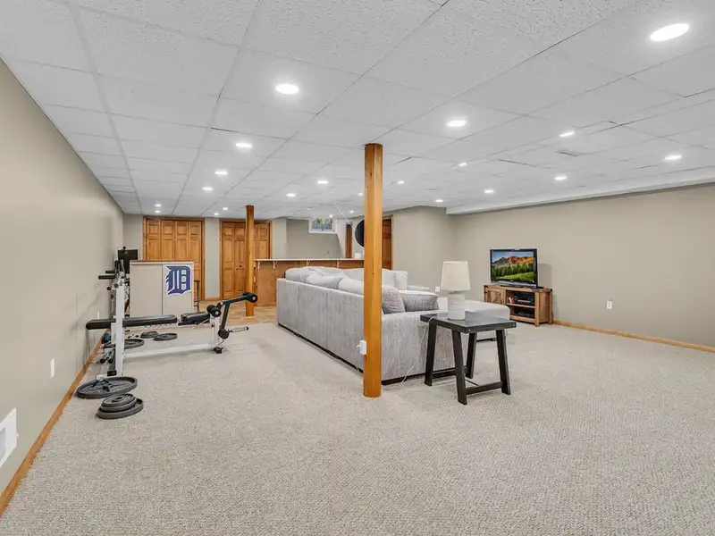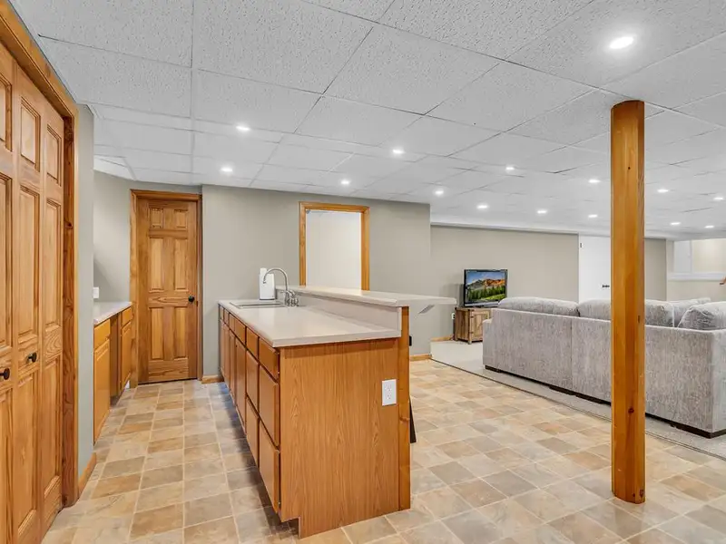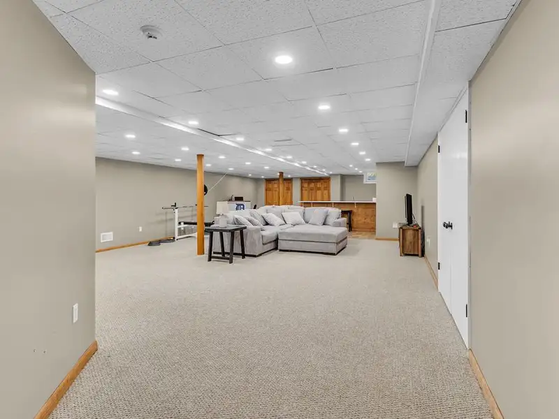 - Finished basement with wet bar and half bath