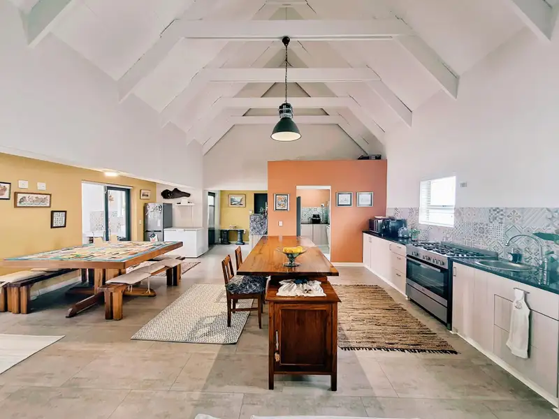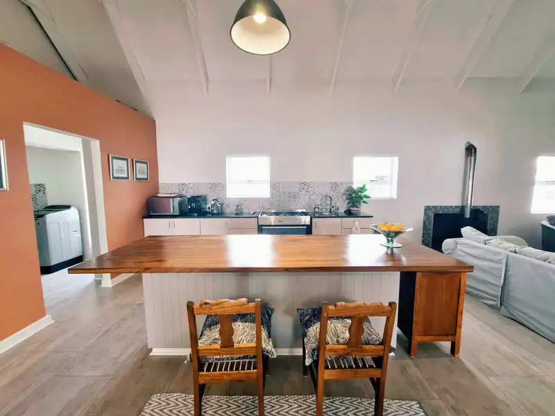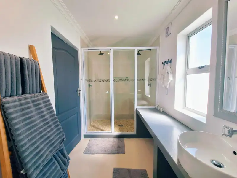 This property consists of a spacious 3 bedroom main home and an additional upstairs loft room with en-suite bathroom that can be utilized as a flat or an office space. The flat has a separate entrance. Situated on one of the few tarred roads in Jacobsbaai.