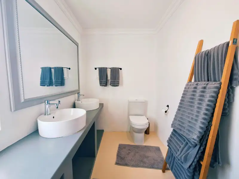 * En-suite main bathroom with his/hers showers and his/hers basins and toilet