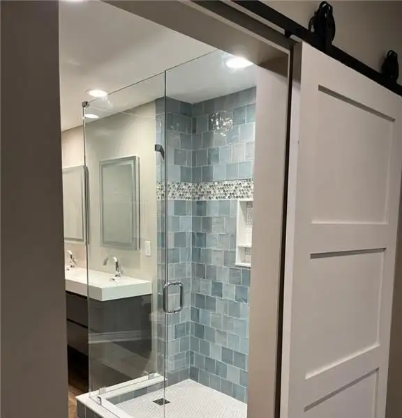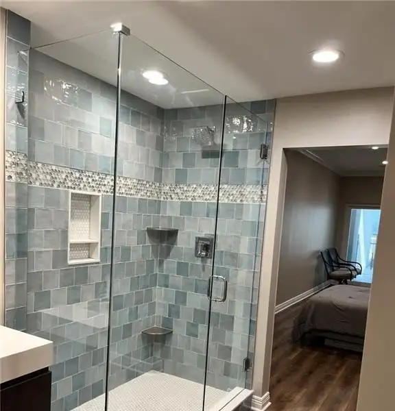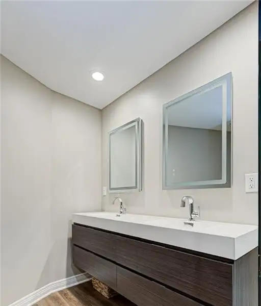 - Primary bath with double floating vanity