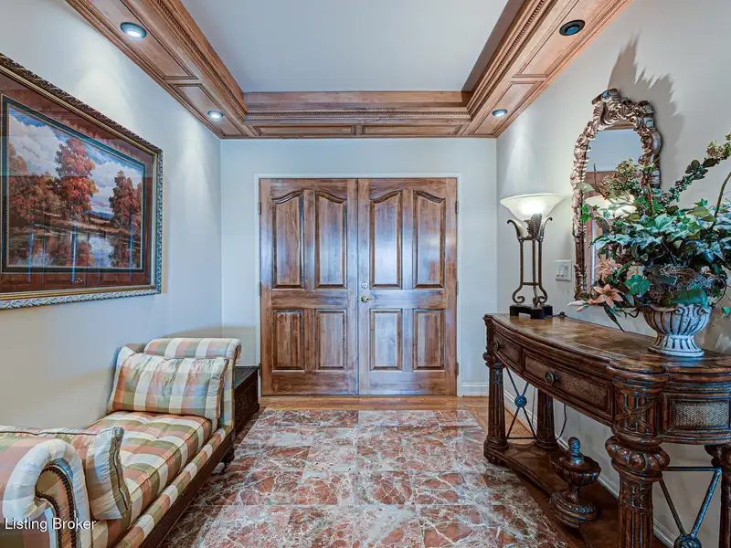 - Hardwood floors with inlaid marble foyer