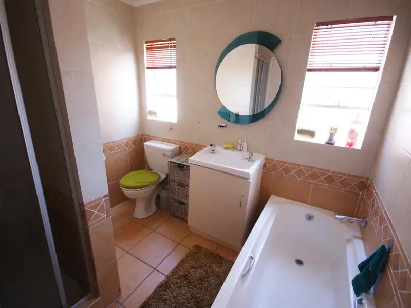 Two generously sized bedrooms complemented by a full bathroom featuring a bath, shower, basin, and toilet.