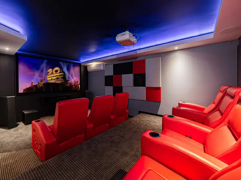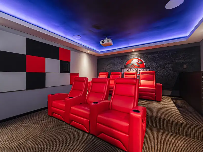 For the tech-savvy connoisseur, an HD Anywhere Hub orchestrates a cinematic experience, controlling all TVs via remote or app. The Ubiquiti Wi-Fi system ensures seamless connectivity throughout the premises. A sound-proofed cinema reflects the commitment to perfection, featuring acoustic paneling, a self-leveling projector, top-of-the-line speakers, and amplifiers, all conveniently operated through the Control4 remote or app.