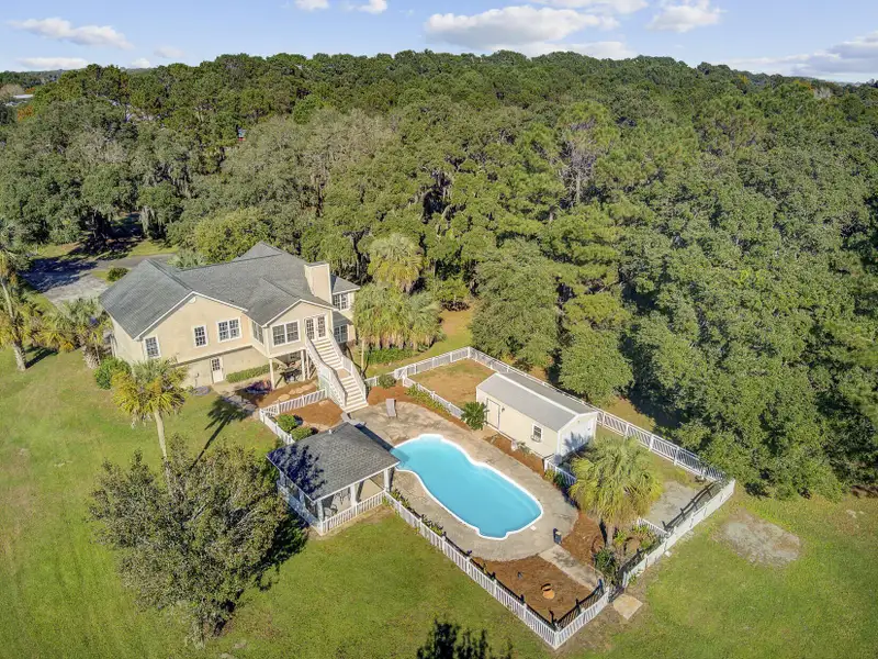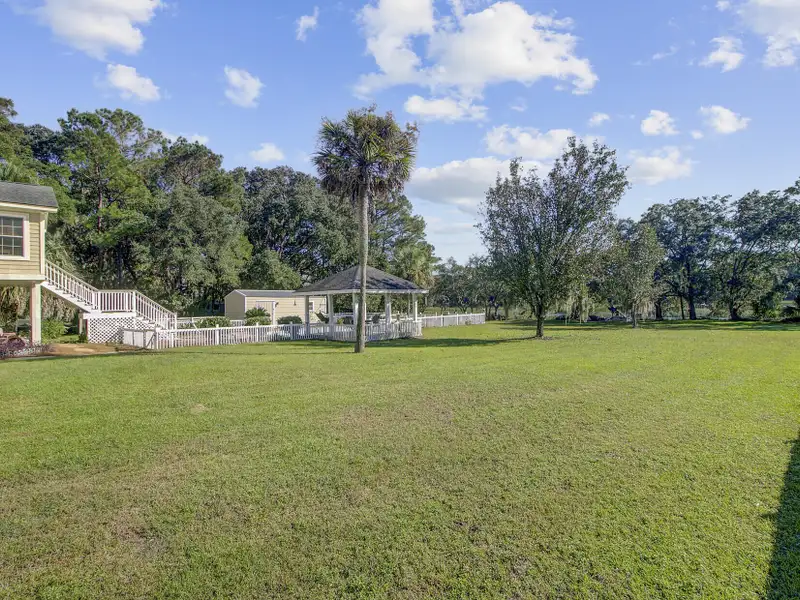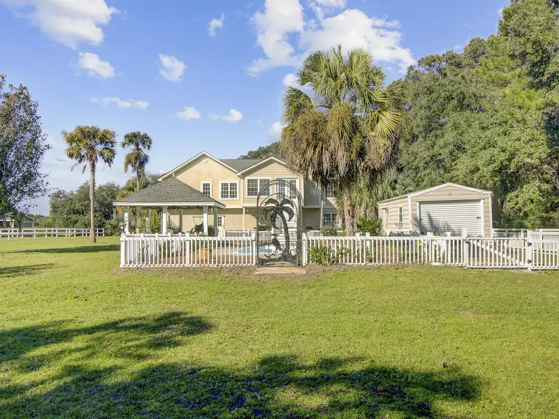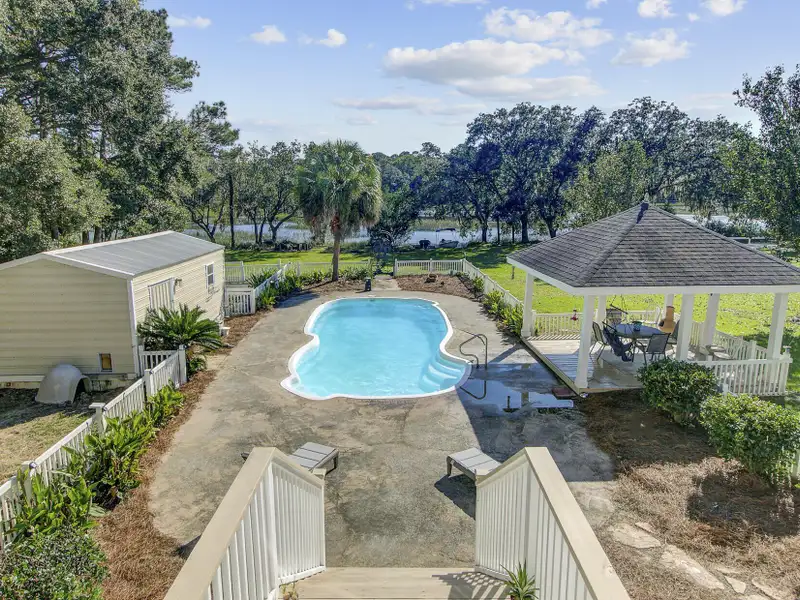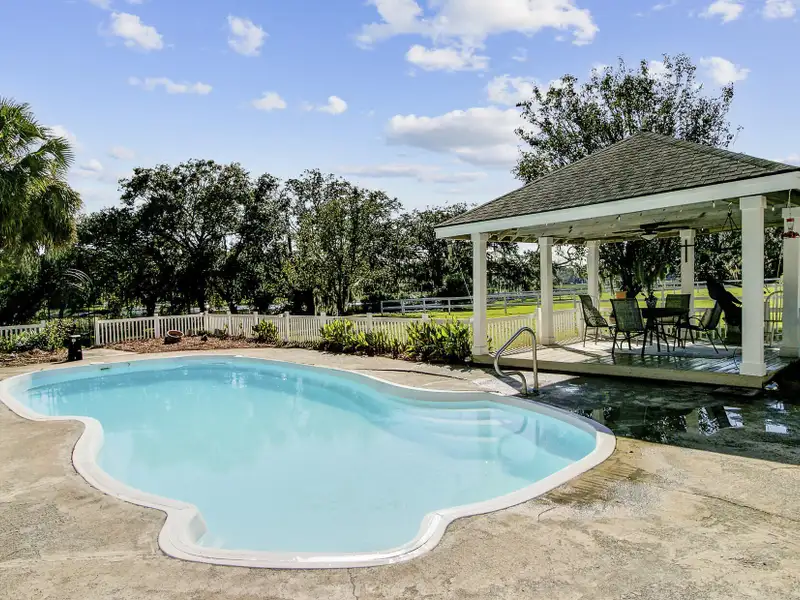 - Fenced pool area with gazebo