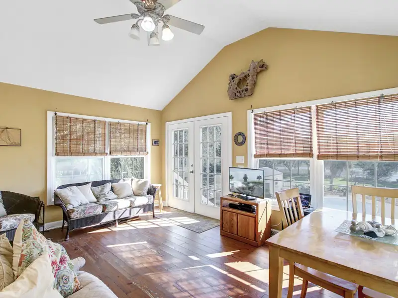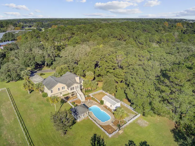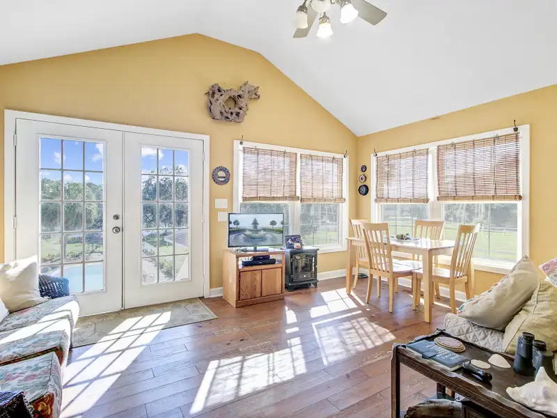 - Sunroom overlooks pool and creek