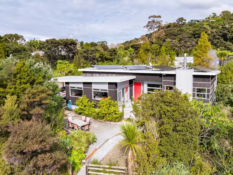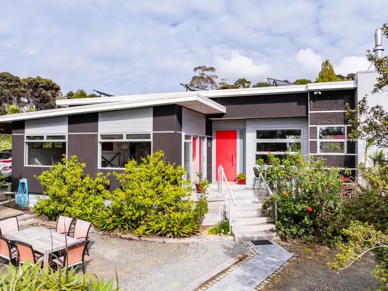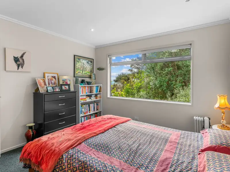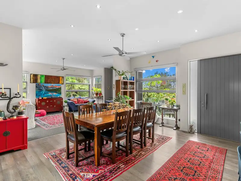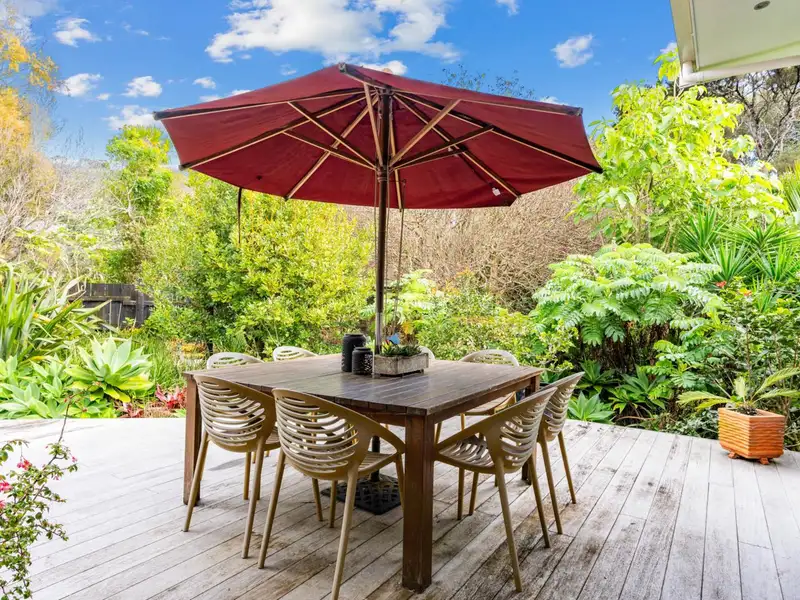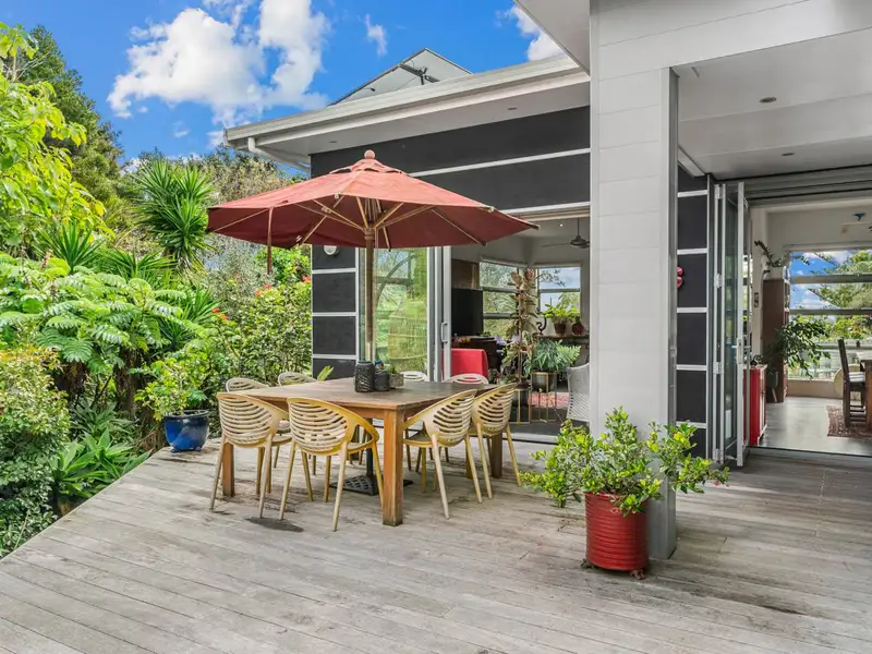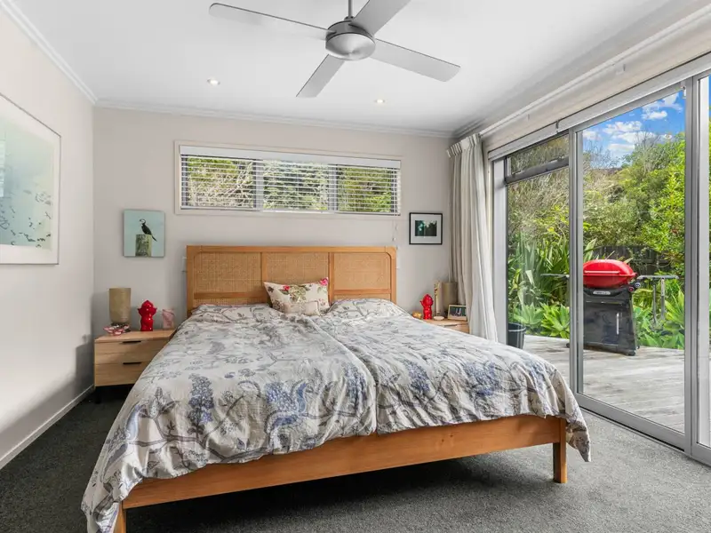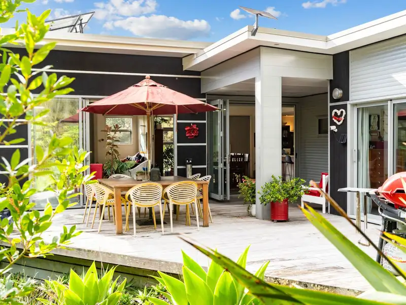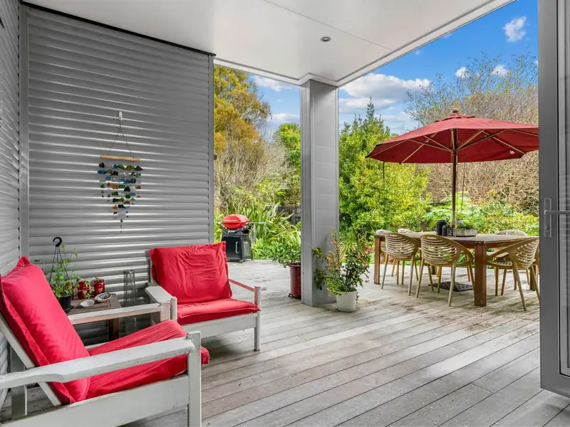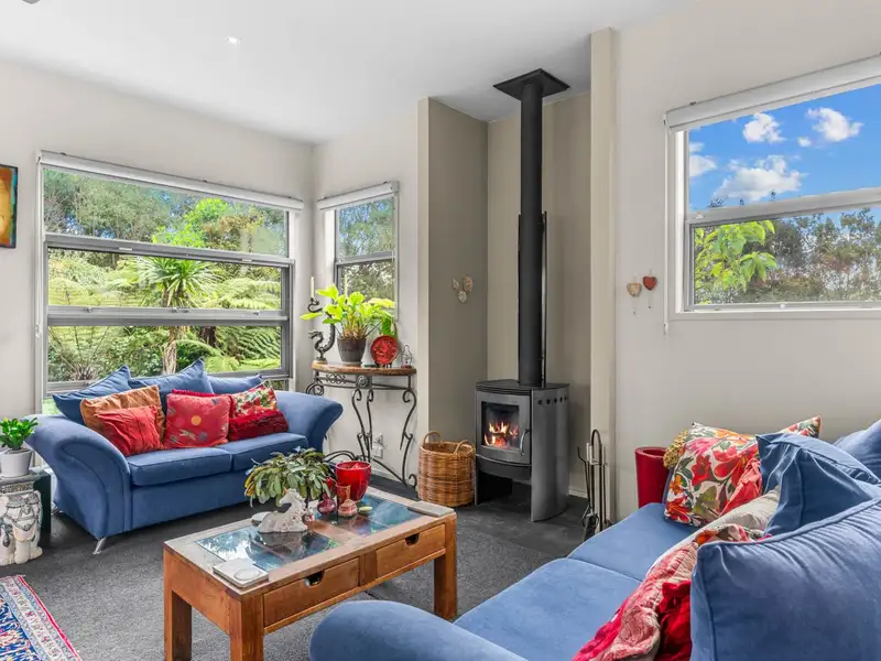 Step inside to experience the open-plan living bathed in natural light, thanks to soaring high studs and seamless indoor-outdoor flow. Entertain with ease from the contemporary kitchen, complete with a butler’s pantry, while family and friends gather around the spacious living area or spill out onto the expansive deck or gather around the wood fire on winter nights. The master suite is a true haven—tucked away for privacy, featuring a walk-in robe, a large ensuite, and direct access to the sun-drenched semi covered deck and lush gardens beyond. Two additional bedrooms are cleverly positioned at the opposite end of the home, offering peace and privacy for all.