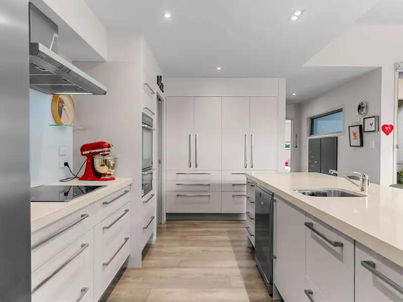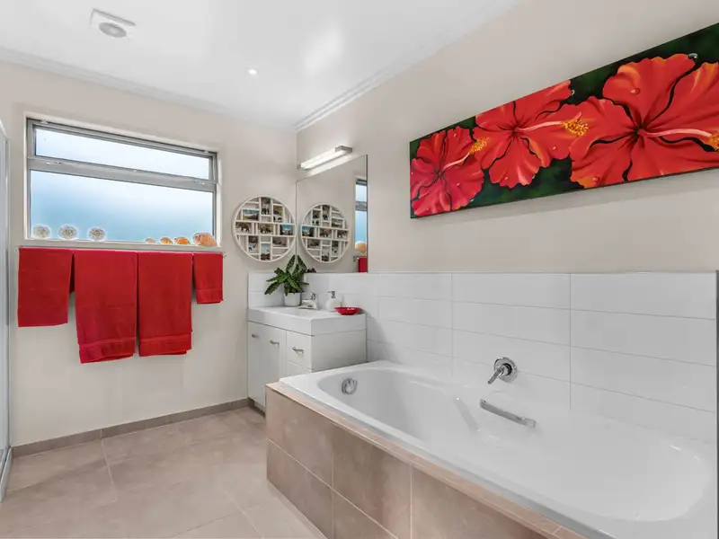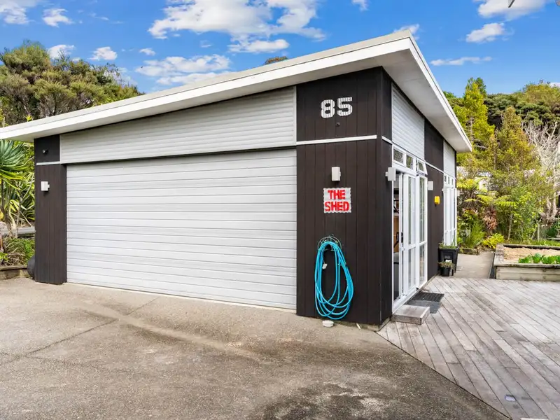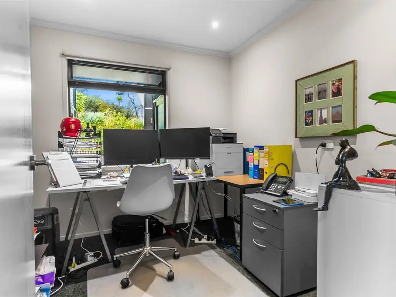 A dedicated walk-through study, connected to ultra-fast fibre, makes working from home a breeze. Step outside and follow the charming boardwalk through an abundance of fruit trees and beautifully landscaped grounds, leading you to a delightful potting or garden shed—perfect for green thumbs.