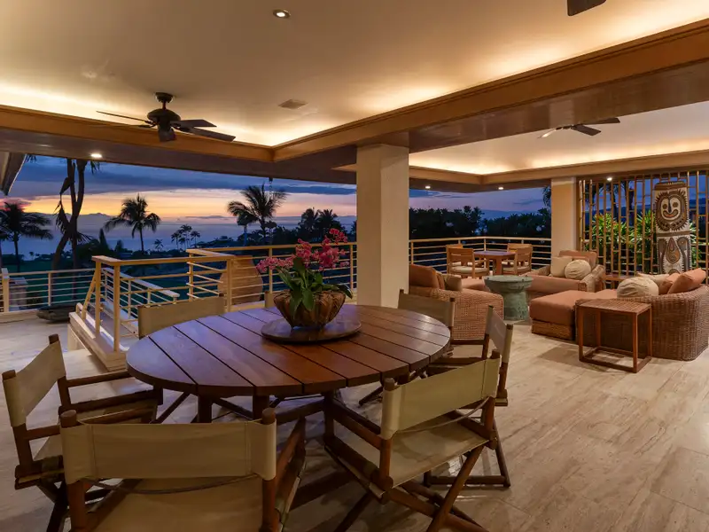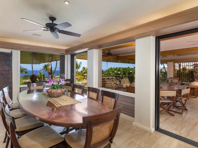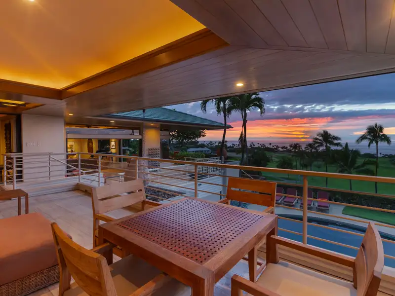 - Lanai overlooking saltwater pool and ocean