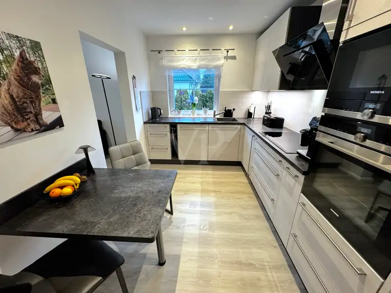 In the kitchen, which was completely refitted in 2022 as part of the modernization work, you will find modern, high-quality built-in appliances that make cooking a pleasure. The adjoining utility room offers plenty of space for everyday items as well as a washing machine and dryer.