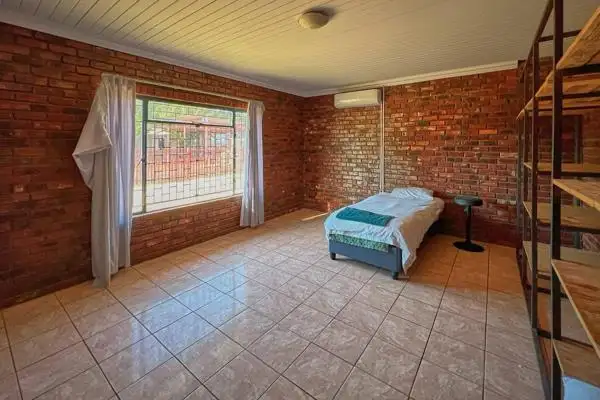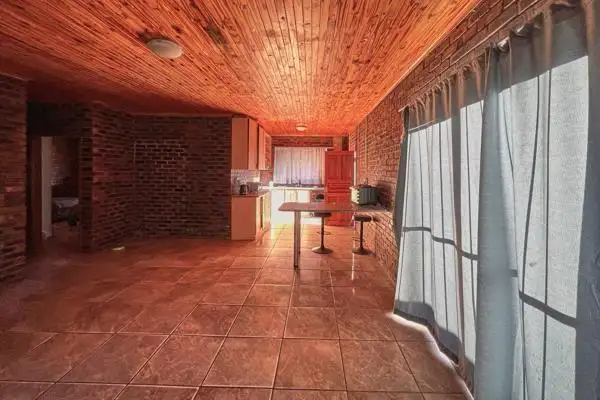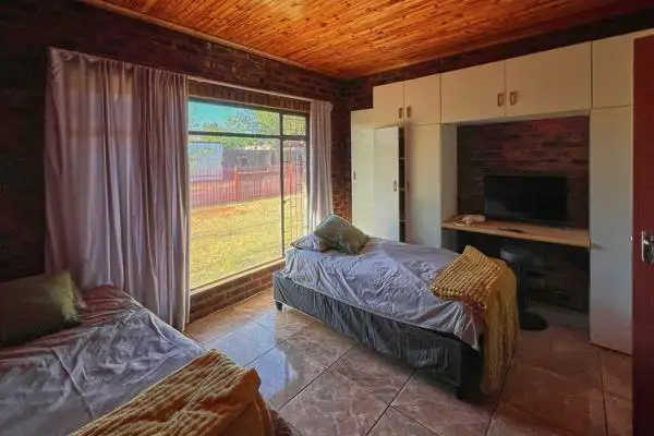 2 Big houses for the price of one The first house has 4 bedrooms, 2 bathrooms, an open plan kitchen-livingroom with a big outside braai, storage space and parking for 4 cars. The second house has 3 bedrooms, 1 bathroom, a big open plan kitchen-livingroom with your own outside braai These 2 houses share a Borehole and Eskom power.