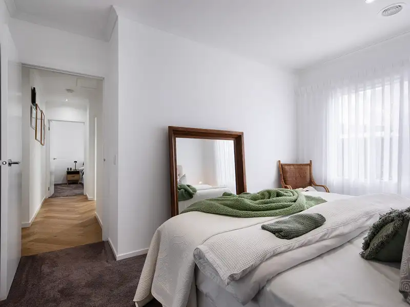 • Two further bedrooms with built-in robes are serviced by a central family bathroom with bath and shower, complemented by a separate WC for practicality.