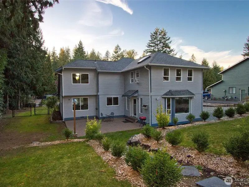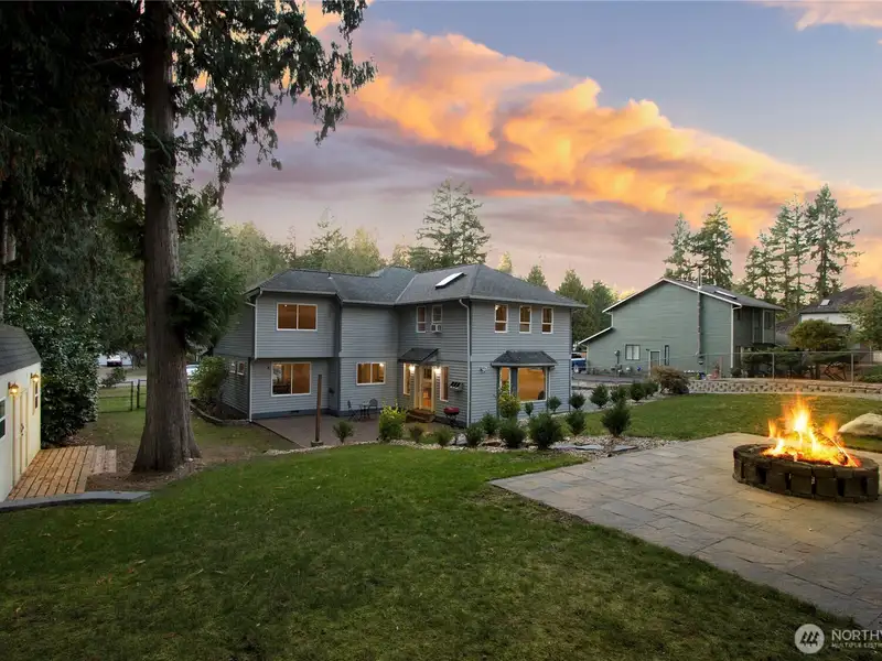 - Fenced backyard with patio and two sheds