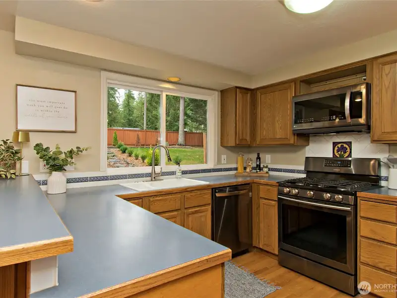- Kitchen with stainless appliances and gas cooktop