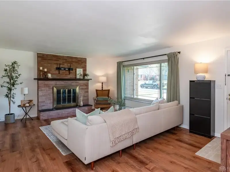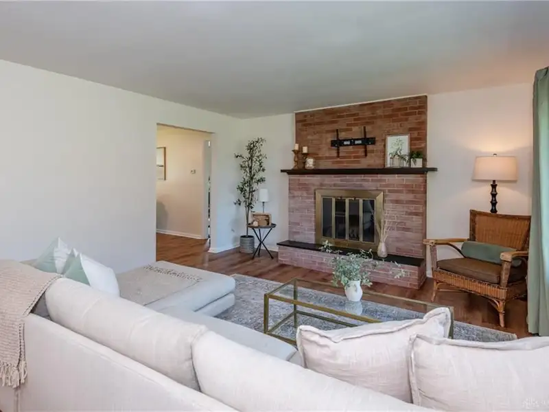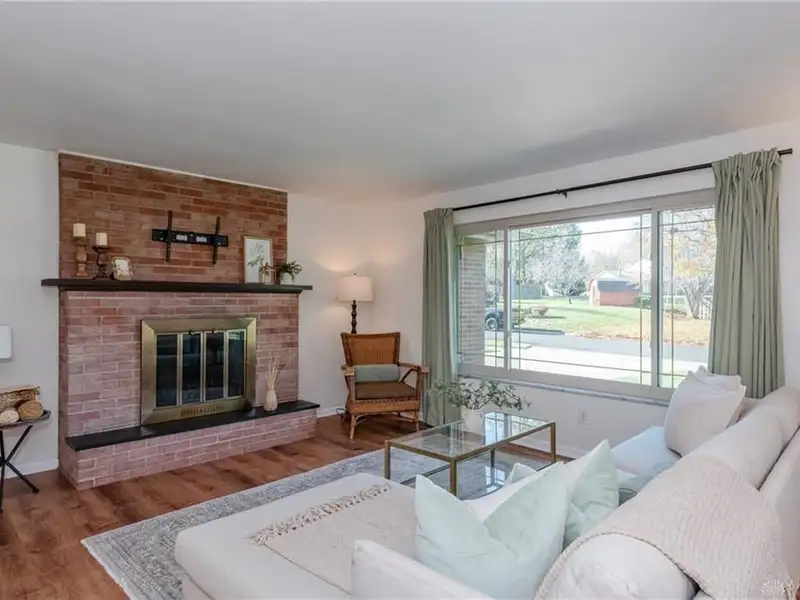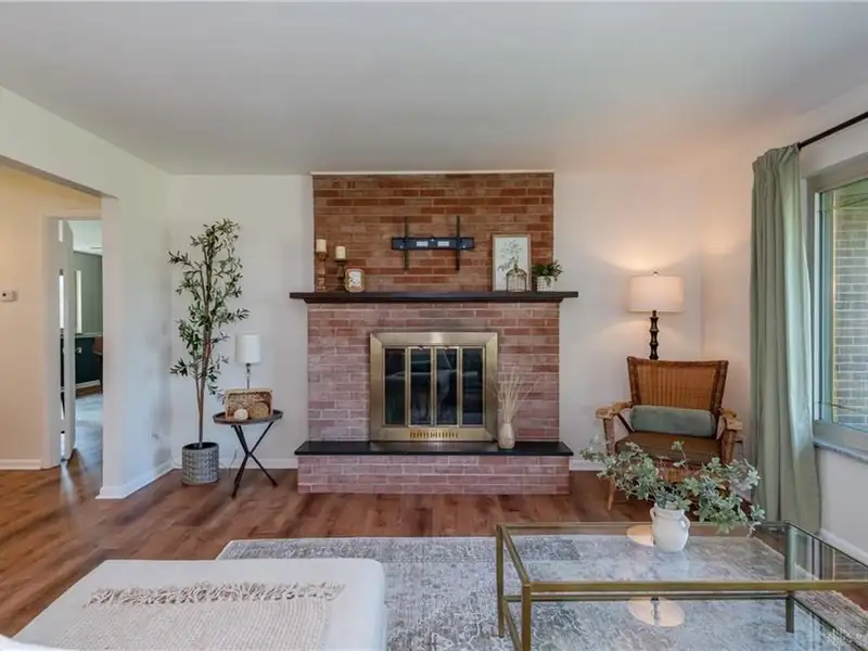 - Classic brick fireplace in living room