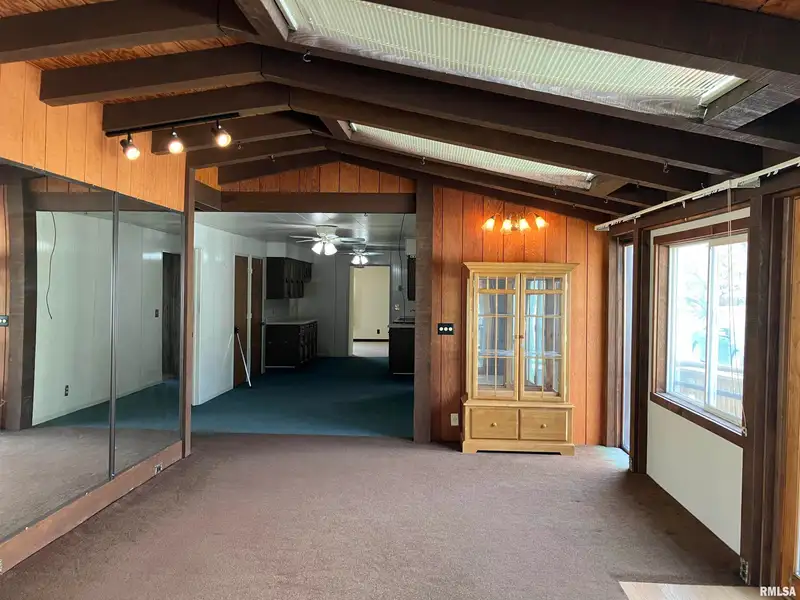 - Vaulted ceiling with skylights