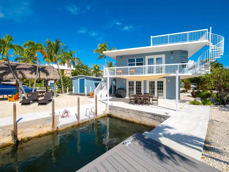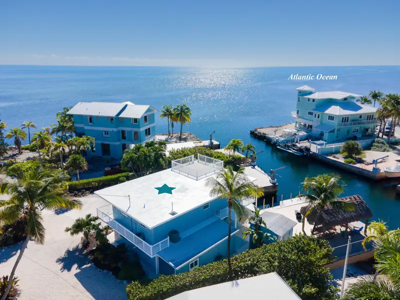 Welcome to Casa Kai - This immaculately maintained and fully furnished 4-bedroom, 2-bathroom CBS home with a concrete roof and impact-resistant windows and doors is perfectly situated just one home away from the open Atlantic Ocean. Enjoy 90 feet of canal frontage with the benefit of ocean views and direct access to world-class fishing, diving, and boating. The lower level features three bedrooms, a full bath, and a convenient laundry room. Upstairs, the spacious open-concept living area offers ocean views, along with another bedroom and a second full bath. Set on an oversized 10,500 sq. ft. lot, the property features a unique and protected 30-foot cut-cove boat slip, room for a pool, ample parking for vehicles and trailers, a paved driveway, and both a shed and garage for additional storage. Take in a bird's-eye view of the Atlantic Ocean from the rooftop deck, or unwind under the spacious tiki hut. Exceptionally clean and thoughtfully cared for, Casa Kai offers a strong seasonal rental history and presents a rare turnkey opportunity to own a piece of paradise in the Florida Keys.