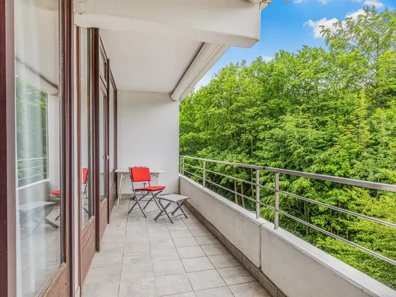 - Large south-west-facing balcony with awnings