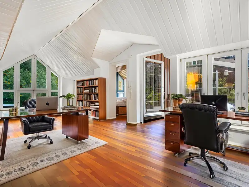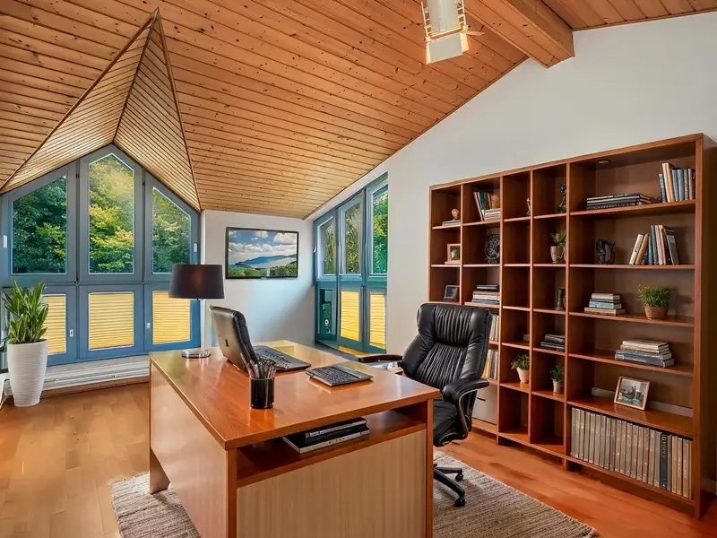 The spacious floor plan on the first floor offers plenty of room for creative usage concepts. In addition to the rented apartment, there is a charming, converted studio on the upper floor. Here, too, balconies provide additional open space and a wonderful view of the greenery.