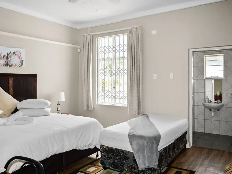 This property offers the best of both worlds – a fully functioning guesthouse with all the extras, or a spacious family home with room for everyone and more. Located on a generous corner plot in a peaceful part of town, it's a place where you can truly settle in. With 9 en-suite bedrooms, the house has been thoughtfully designed to give every guest – or family member – their own space and comfort. Whether you're hosting travellers or growing a large family, there’s more than enough room to make it work for you. There are two lounges, a dining area, entertainment room with a bar and pool table, plus indoor and outdoor braai areas for making memories together. A large undercover patio looks out onto a lush garden and sparkling pool – perfect for relaxing afternoons. Practical features include two entrances, lots of secure parking, a lock-up garage, outside laundry, storage space, and water tanks. Inverters keep the lights and TVs running during loadshedding, adding to the comfort. Whether you’re dreaming of running your own guesthouse, or just need space to raise a family in a home full of charm and potential, this property is ready for you. Come and see for yourself – contact us today to arrange a viewing. Your next chapter could start here.