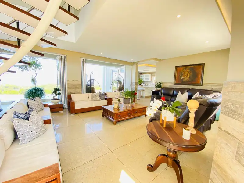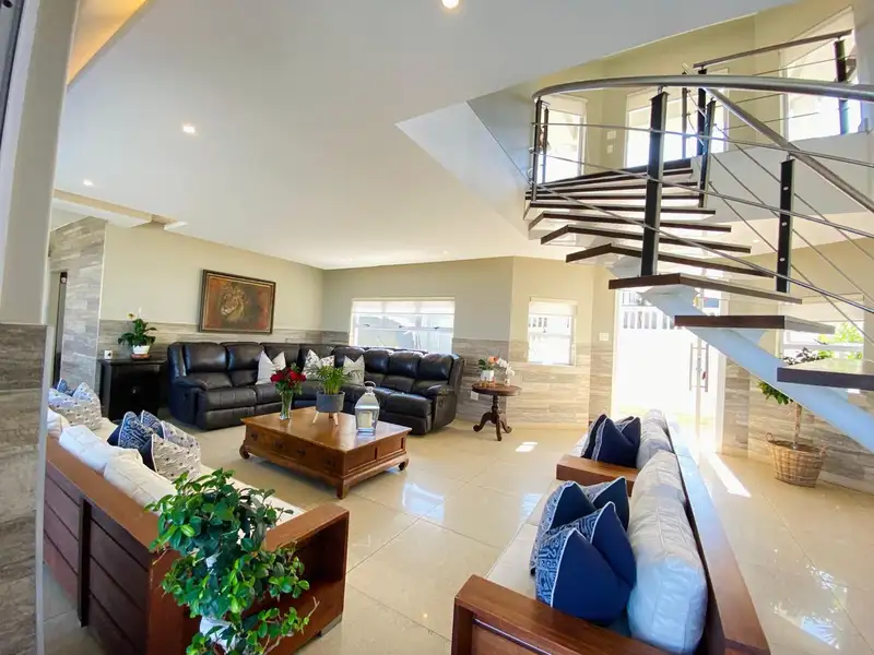 A grand sea facing home which is perfectly located within the prestigious neighbourhood of Larnaco offers so much; Boasting amazing elevated 180 degree views over the estate plus inviting double volume entrance and bespoke floating stairway, - 6 bedrooms, 6-bathrooms, 6 en-suites, two lounges, glamorous Quartz kitchen and separate scullery …an absolute feast for the eyes and heart!….