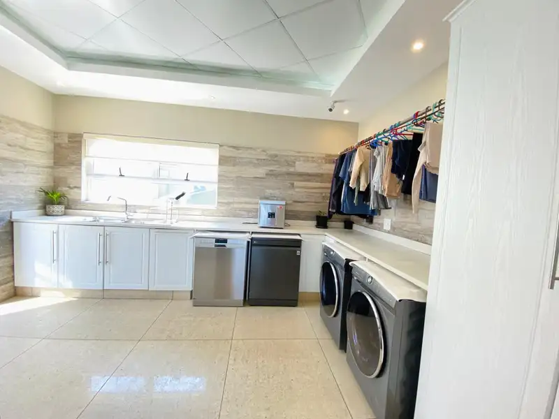 This is a property built for entertaining on any scale. Whether it's on the covered entertainer's patio or inside the well-proportioned house itself, every gathering is an occasion. The grand kitchen including a separate scullery caters to your gastronomic adventures, that is flanked by two lounges, open plan in design, giving the heart of the home a sense of continuity and effortless sophistication.