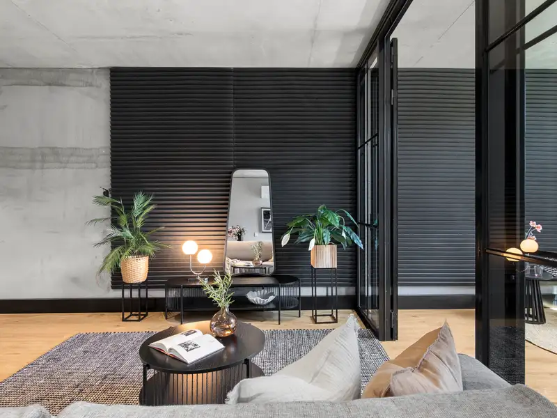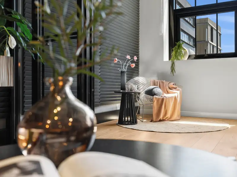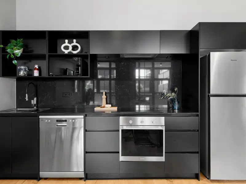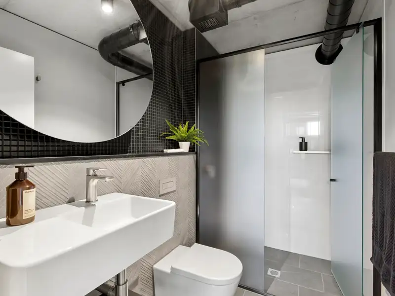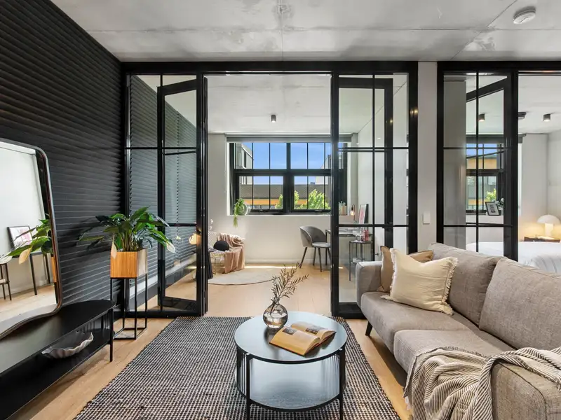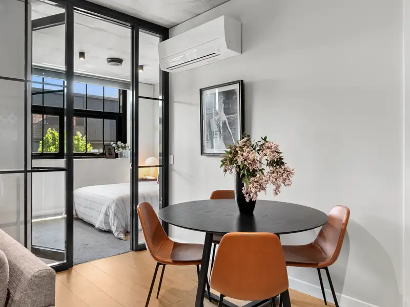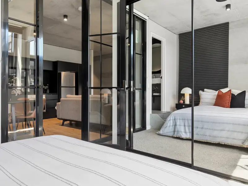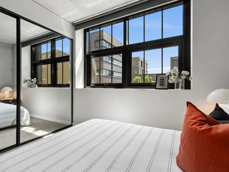 Nestled in the vibrant and desirable Kingsborough Village precinct of Kingston, this stylish two-bedroom apartment delivers a compelling blend of convenience and character. Located just moments from the foreshore, lakeside walks, cafés and boutique shops, you'll enjoy the best of Inner-South living at your doorstep. Inside, the open-plan living and dining zone is enhanced by industrial chic design elements-exposed raw concrete walls, shadow-line ceilings and oak-engineered timber floors-creating a stunning backdrop for entertaining. The sleek chef's kitchen doesn't disappoint, featuring premium Italian ILVE appliances (including induction cooktop), stone benchtops and clean, modern finishes that combine form and function effortlessly.