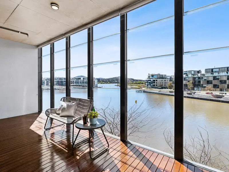 Enjoy uninterrupted views of Lake Burley Griffin from this light-filled two-bedroom executive apartment, located in the sought-after Element complex.