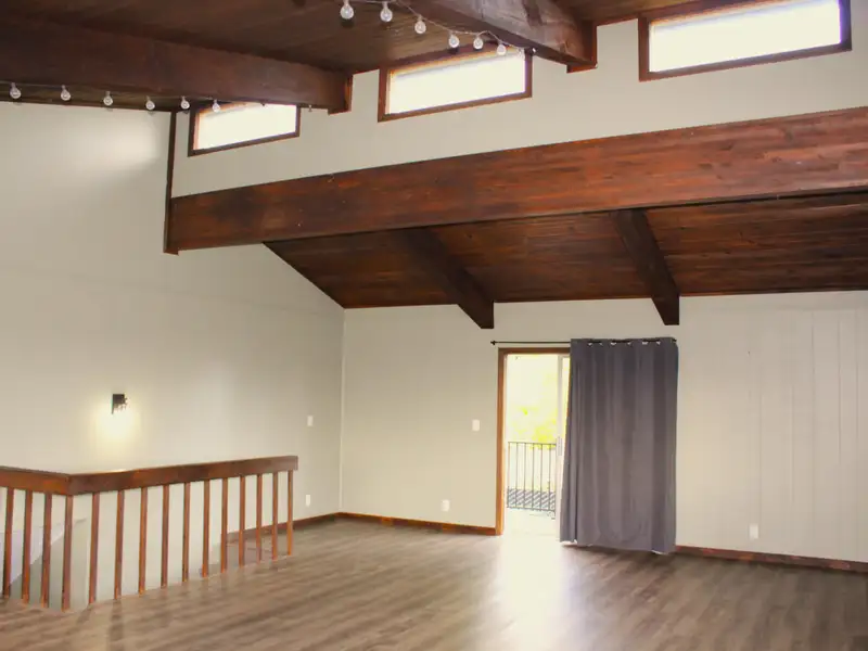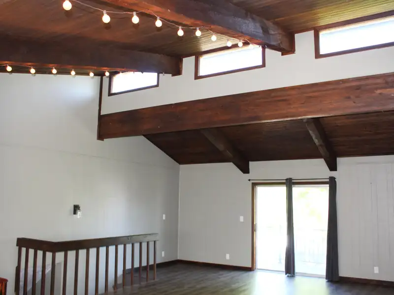 - Vaulted great room with wood ceiling