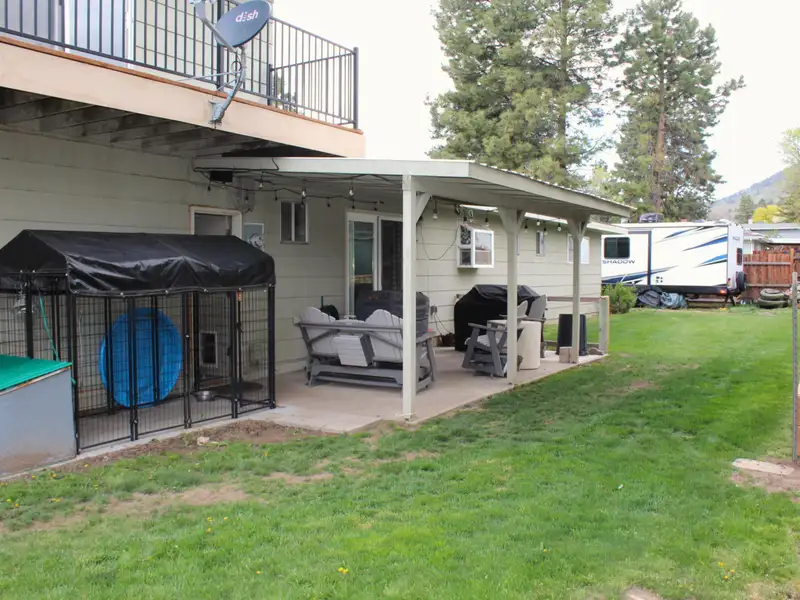 - Covered patio with fenced backyard
