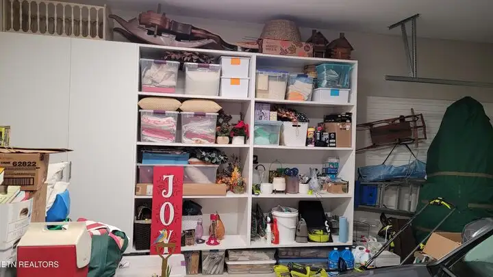 - Oversized 2-car garage with storage system