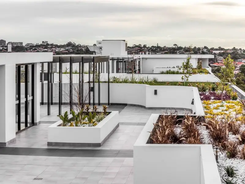 - Rooftop communal garden with views