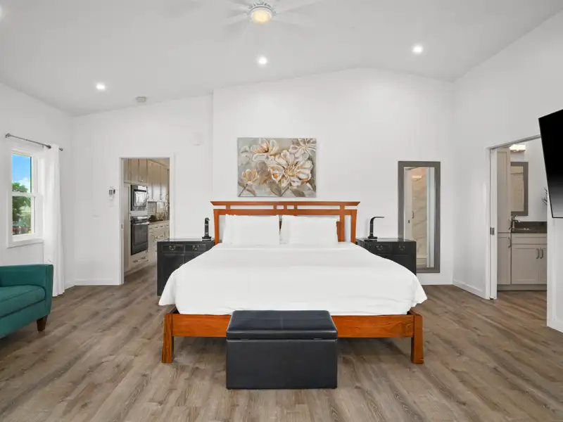 - Open floor plan with vaulted ceilings