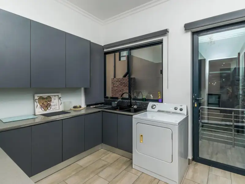 Triple garage, with double volume ceilings, direct access into the home.