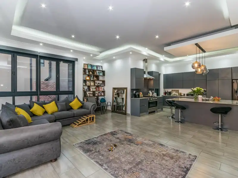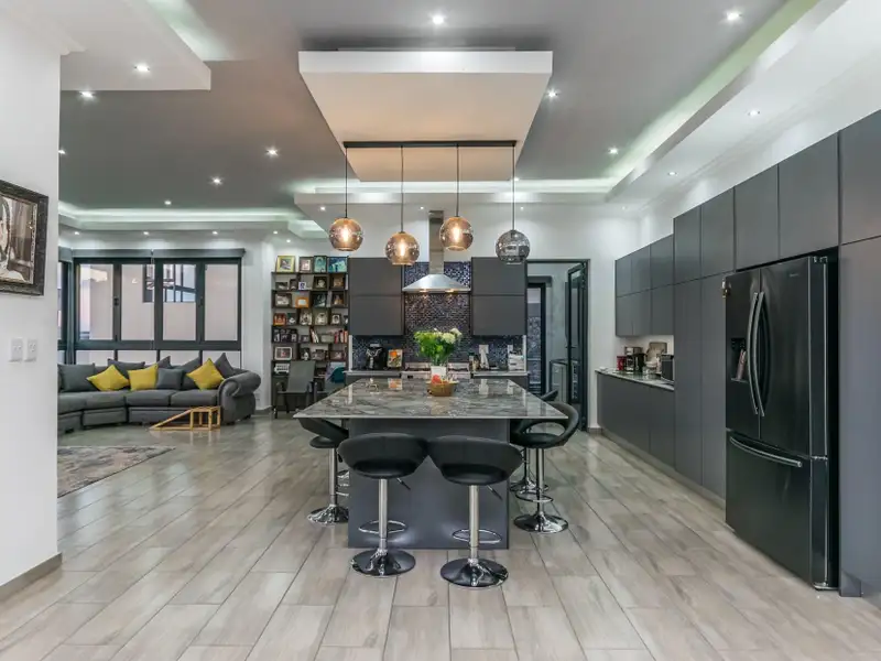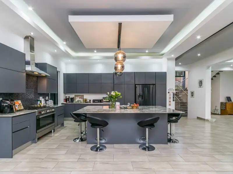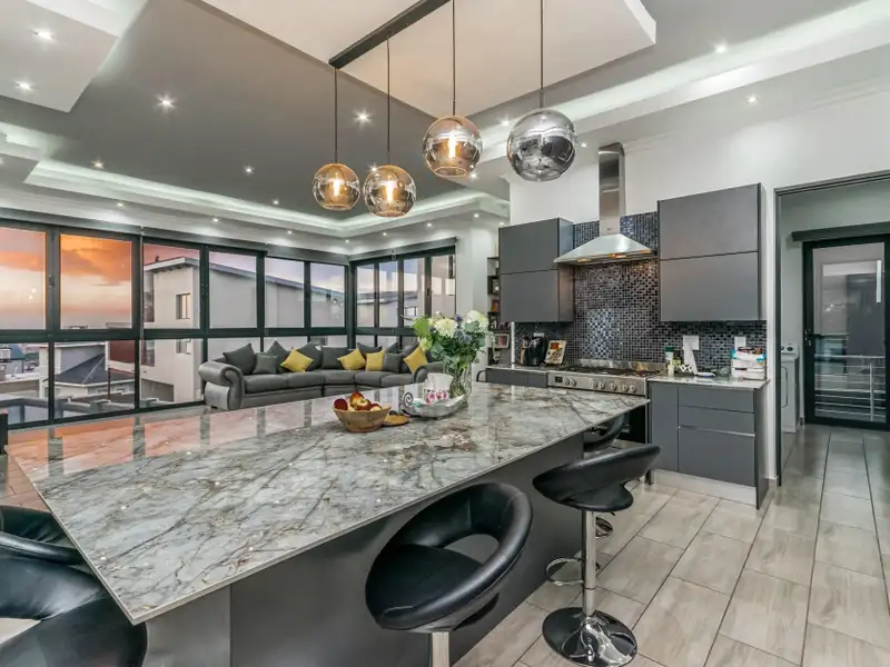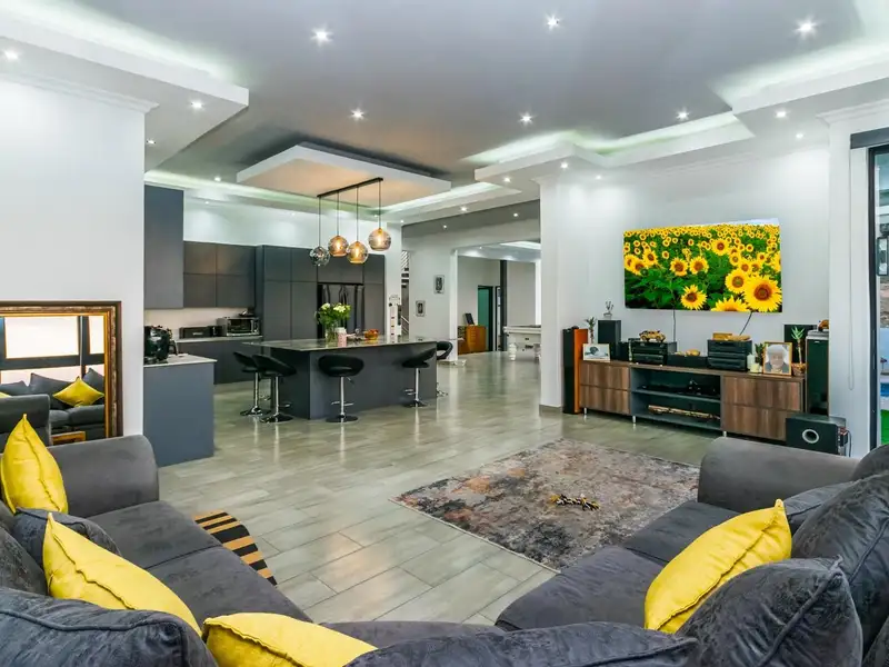Brand New throughout. Ultra modern open plan living. Double volume grand entrance....Master chef kitchen ready for all occasions, Big center island, with all the space and extras you need. Separate scullery area with double sink and place for all your appliances.