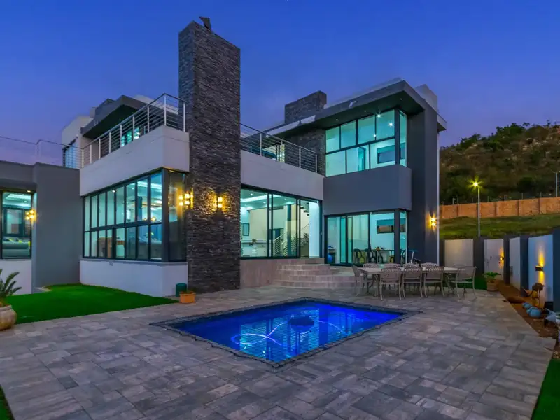 Only been lived in for a year! Top class security estate, ideally located at the footstep of the Krugersdorp Mountain range. Views as far as the Magaliesburg....