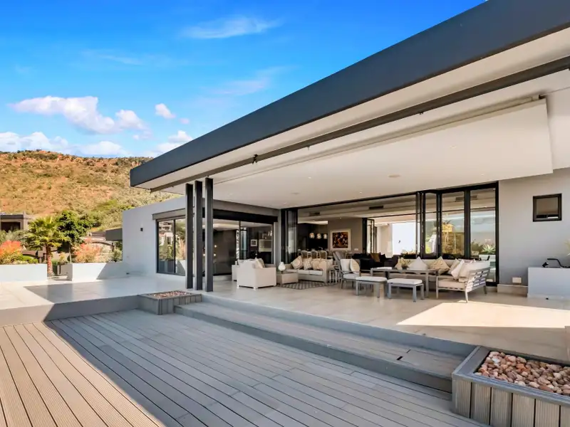 Step outside to an expansive entertainerΓÇÖs patio, complete with both gas and wood burning braais, where al fresco dining unfolds in harmony with the surrounding natural beauty.