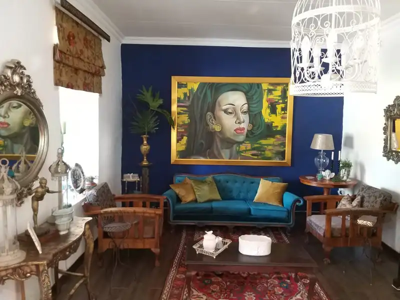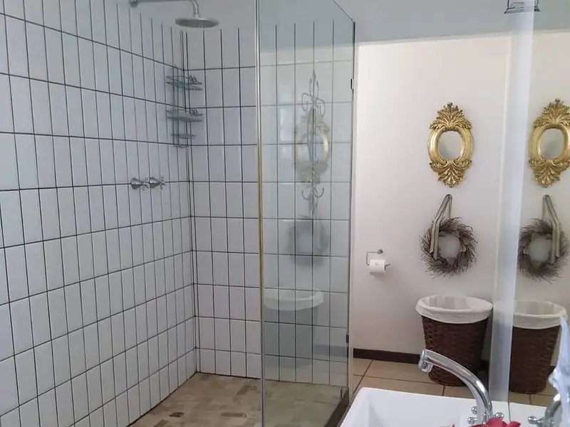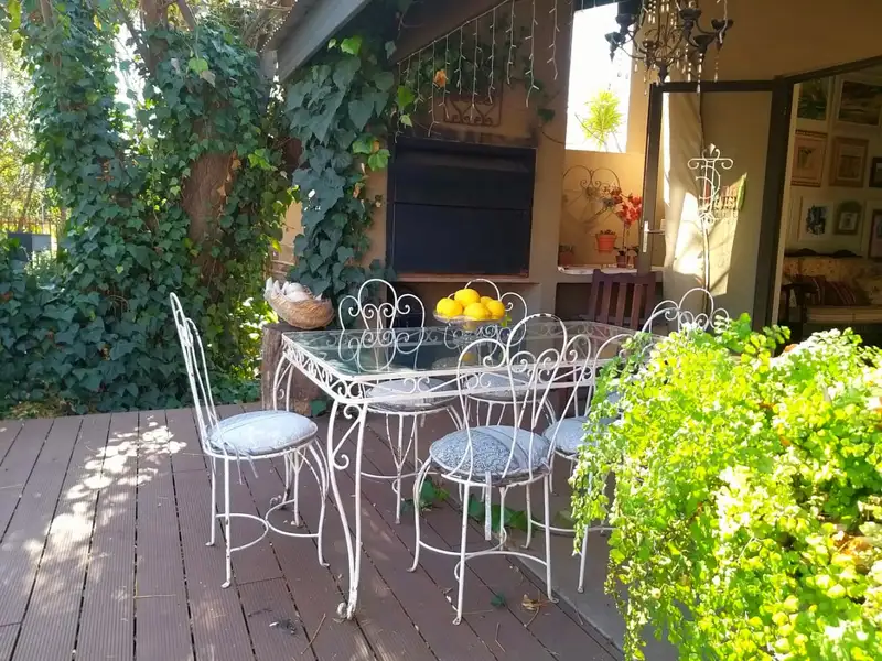 The main cottage boasts a welcoming stoep, reception lounge and office, a conference room, big enough for 18 people, with big flat screen TV, white board and flip chart. An air conditioner makes this a productive space. Just off the stoep are his/hers toilets which the coffee shop (on the premises) also uses. The main cottage only has one bedroom with full bathroom, a pantry, well laid out kitchen and dining room. The pool lounge and deck is also part of the main house, All furniture and belongings in the main house are the property of the owners and will be removed, except for a few items in the conference- and dining rooms which will be stated on an inventory.