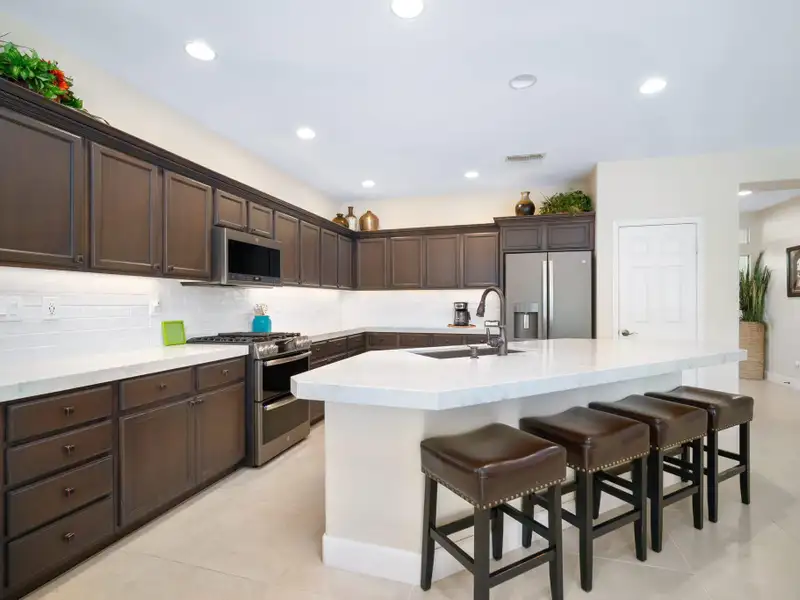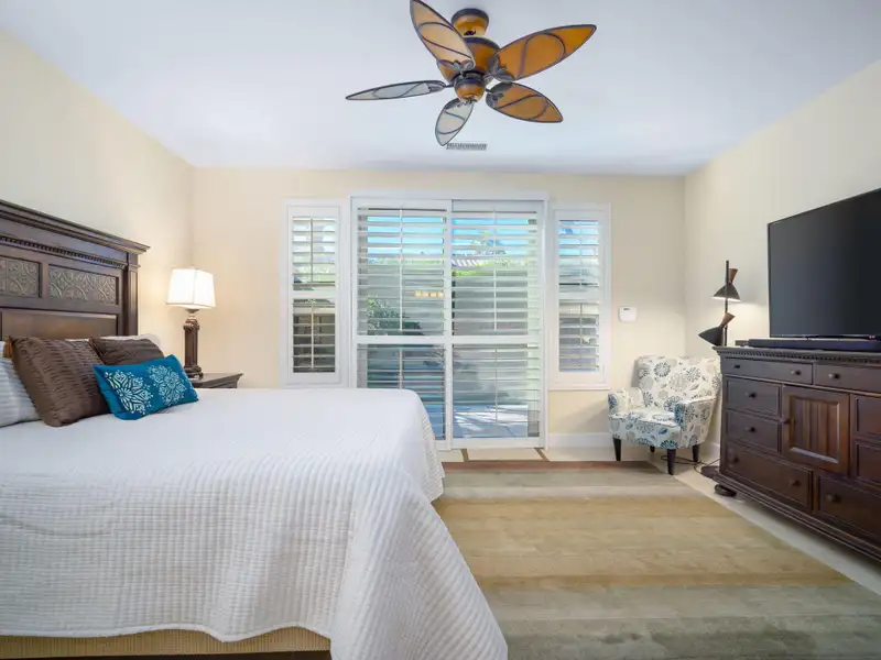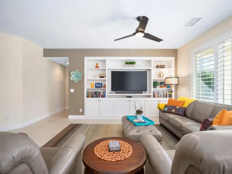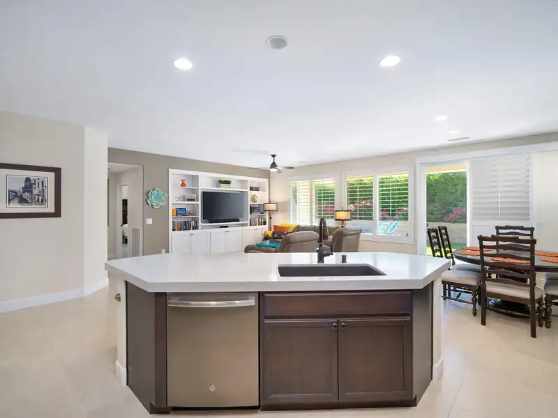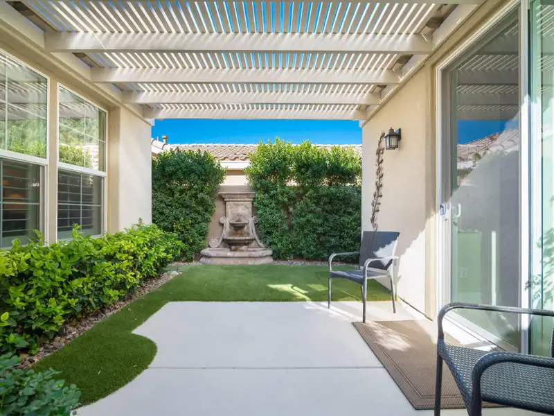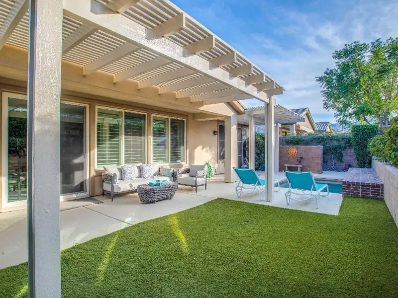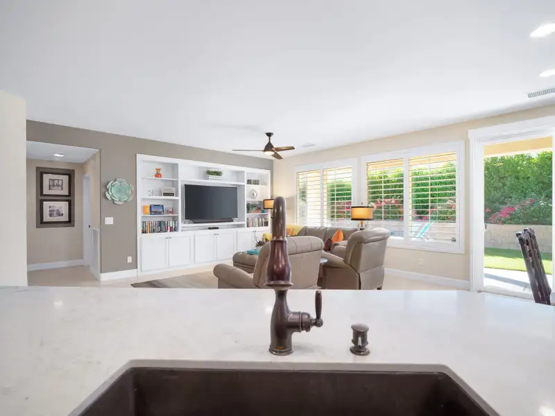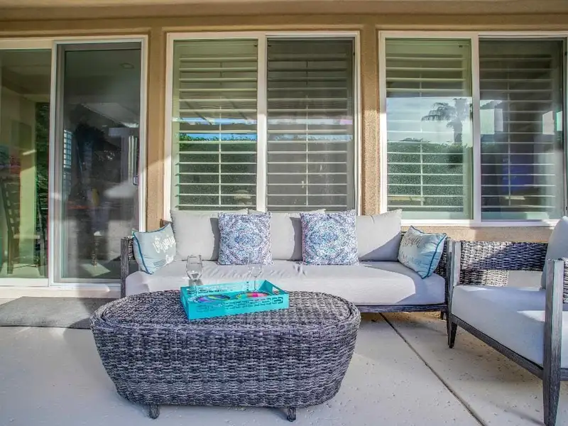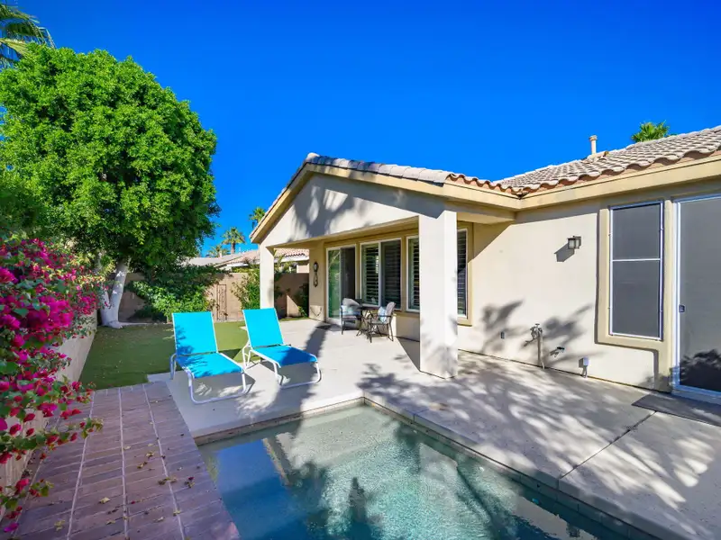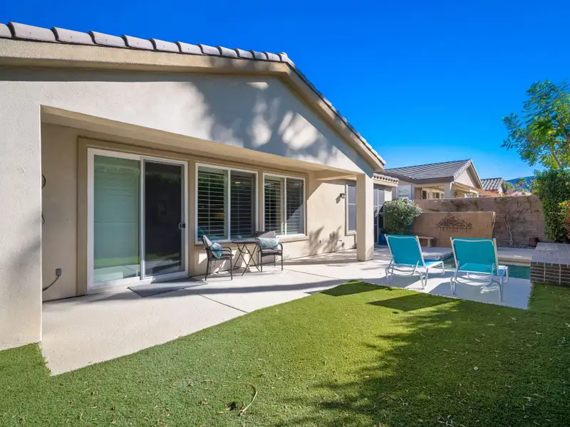 RENTED NOV. 1, 2024 THRU APRIL 30 2025. 11-1-25 thru 3-31-26. Trilogy in La Quinta is a 55 and older community. Enjoy the spacious and well-appointed Casa-del Sol while calling this Trilogy Monterey model home. Wake up refreshed in the comfort of the primary suite's adjustable King bed. With direct access to the backyard, you can enjoy your morning coffee lounging under the ample shade on the resort-style furnishings or relax on a chaise under the sun spool-side.Boasting ample space for your occasional guests, Casa del Sol is appointed with a second bedroom with a queen bed and desk, ideal for working from home, a third bedroom with a king-size Murphy bed plus a separate casita with a king bed, convenient kitchen nette boasting a mini-fridge, microwave, Keurig, sink and dishes. All bedrooms have TV's for enjoying your favorite streaming apps. Additionally, the TV's in the primary suite and great room (65' 4K curved) are equipped with cable. You'll feel at home in the well-appointed kitchen with newer GE Profile appliances, Kitchenaid mixer, instant Pot and more to make meals come together quickly. Grill up some favorites on the patio on the electric BBQ. Enjoy a trip around the gorgeous Trilogy development in the four-seater golf cart. Take advantage of all Trilogy has to offer at the clubhouse including two pools. gym, tennis, pickleball, bocce, Cafe solaz and more
