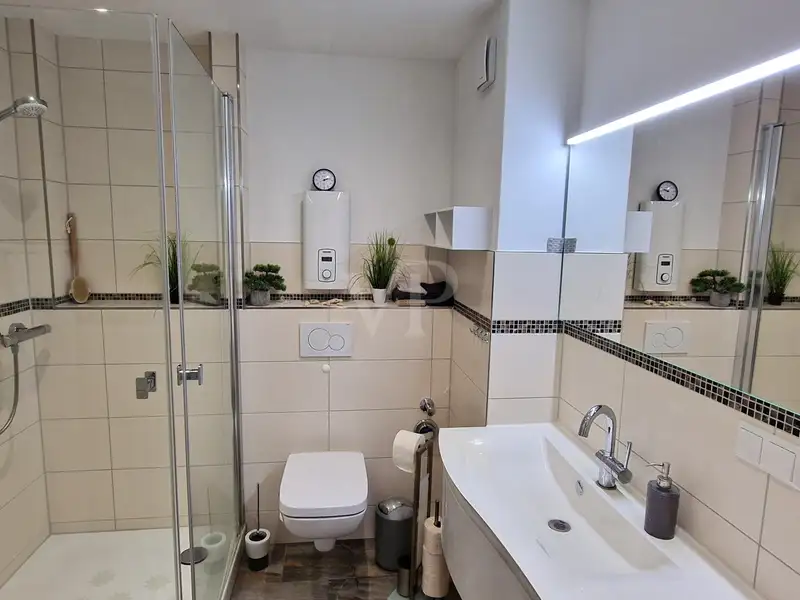 In addition to the appealing living atmosphere, the apartment also spoils you with the corresponding comfort. The windows in the apartment are made of plastic, are double-glazed and have roller shutters, some of which can be operated electrically. An intercom system increases security and contributes to convenient communication.