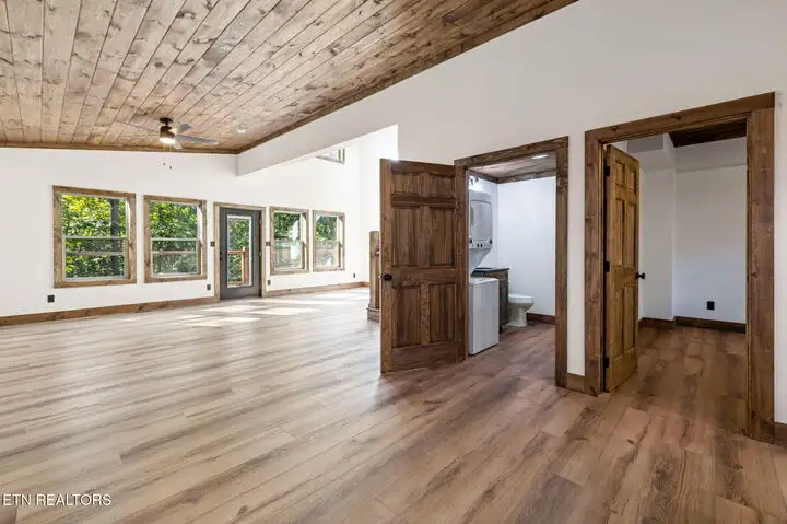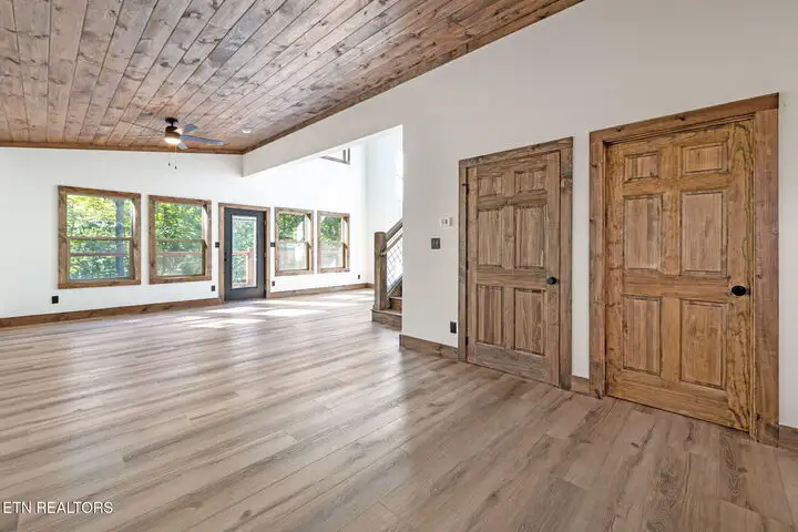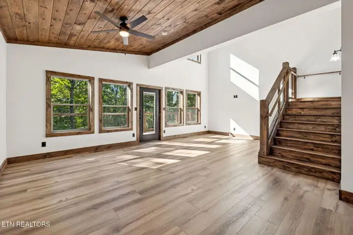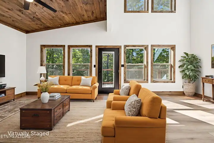 - Open floor plan with vaulted ceilings