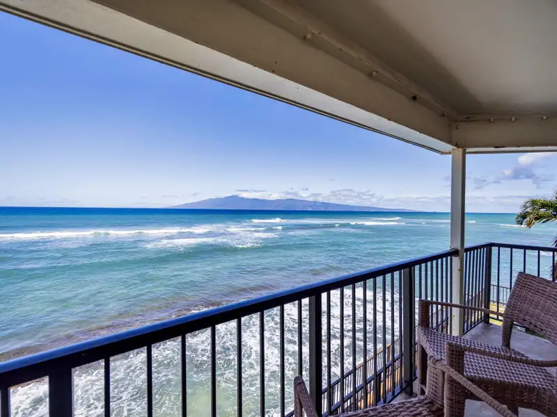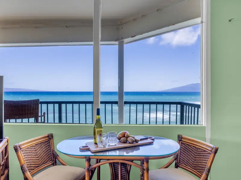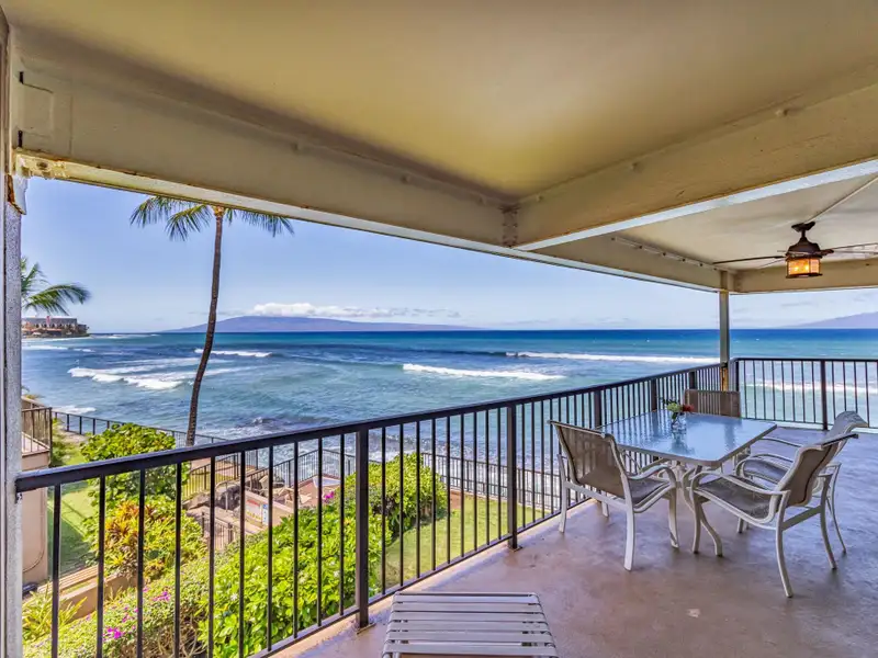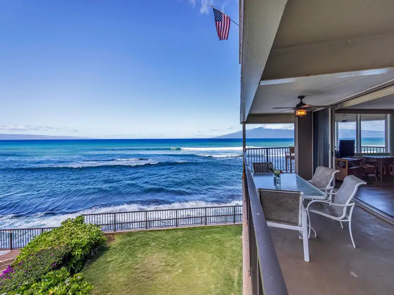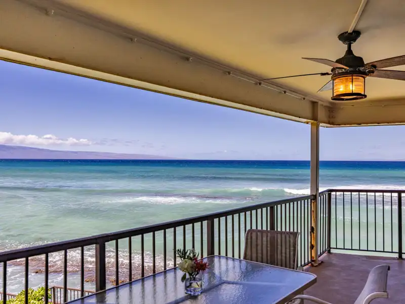 - Covered lanai with whale watching