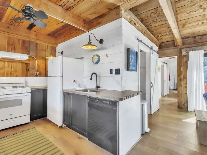 - Vaulted ceilings with luxury vinyl flooring