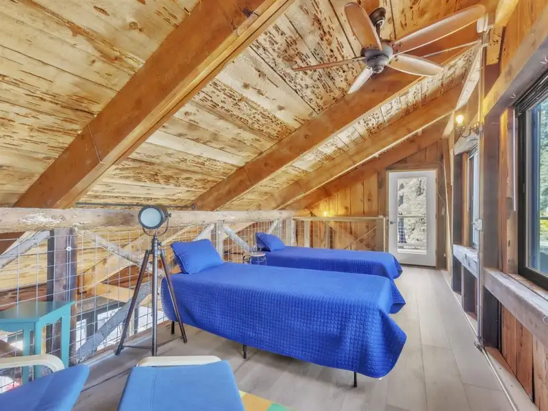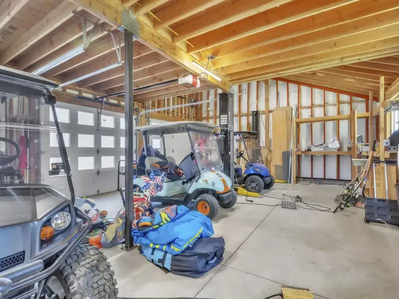 - Three-car garage with car lift and storage loft
