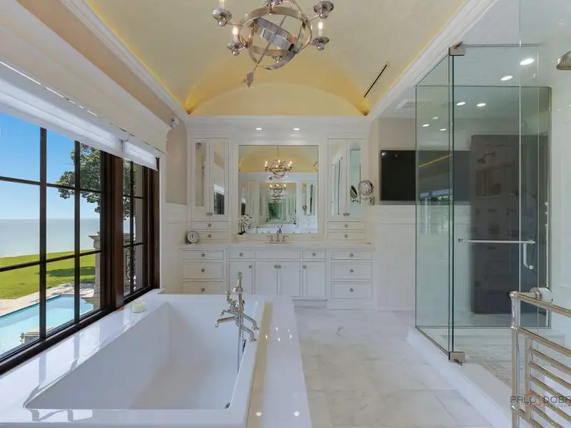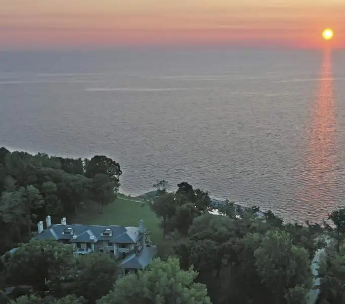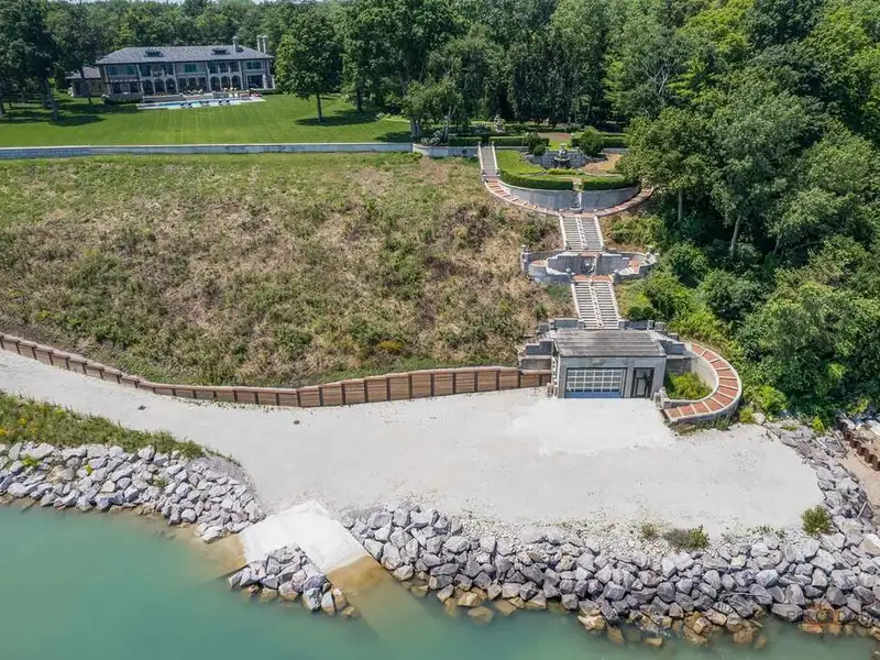 Opportunity of a lifetime to own this spectacular Lake Forest estate, spanning over 5.27 acres with 570 feet of Lake Michigan frontage! After four years of construction, incorporating everything the most discerning buyer would expect in new construction, this estate was completed in 2019. Featuring a protected cove beach, 2 boat launches, a fabulous pool, spa, boathouse and garage space for 22 cars, this home is the epitome of luxury living! Drive through the gated southern entrance to the boathouse or use the opulent historic monumental staircase, enjoying the details of the grand marble fountain and stairs to the boathouse from the original Harold F. and Edith Rockefeller McCormick estate. This magnificent home boasts 10,000 SF of sophisticated and stately living space above grade, 5,000 SF of exquisitely finished lower-level space and 6,000 SF of beautifully finished garage space for 16 cars, with elevator access to all 4 levels. As you enter the grounds of this breathtaking estate, there is a circular stone drive that leads to the stone forecourt w/ two, 3-car garages and a driveway to the underground 16 car garage, all w/ snow melt systems. This stone and brick home has a slate roof w/ custom copper gutters & downspouts, Marvin windows & doors, high ceilings, deluxe designer lighting, smart house technology, geothermal heating and cooling w/ radiant heat floors on all 4 levels, and a back staircase w/ access to all levels. The outdoor amenities are beyond compare and include a pool with deck jets, diving board and under water speakers, a spa with a fountain and 2 fire bowls, an outdoor kitchen and bluestone terraces w/ 3 loggias, one with a TV and fireplace. The custom 3 1/2 inch thick white oak front door with sidelights and artistic wrought iron detail opens to the foyer with limestone floors and 8 custom, concealed wood paneled closets. The handsome library w/ walnut bookshelves, library ladder, intricate millwork, and fireplace has French doors that open to the back loggia with panoramic views of the lake and access to the northern 3 car garage with separate loggia. The east loggia connects to the living room and overlooks the pool, expansive grounds and Lake Michigan. The living room opens to the elegant dining room, which is adjacent to the breakfast room and exquisite Christopher Peacock kitchen and butler's pantry w/ white high gloss cabinetry w/ walnut interiors, and thick quartzite countertops. The massive island has Bahia granite countertops, refrigerator drawers and seating for 4. La Cornue, Miele and Sub-Zero appliances complete this gourmet kitchen which is open to the stunning family room. The exquisite staircase to the second floor is oval w/ custom wrought iron railings that blend utter sophistication with today's living. The luxurious primary suite has incredible views of the lake w/ French doors accessing a private blue stone balcony. The suite contains two separate custom closets w/ designer lighting, 2 linen closets, and a wet bar. The primary bathroom has a large frameless steam shower and lovely soaking tub that overlook the lake w/ two separate custom vanities w/ indirect cove lighting accenting the gold leaf barrel vault ceiling. En-suite bedrooms 2, 3 and 4 have wide plank hardwood floors, gorgeous bathrooms and access to a secondary balcony on the east side of the home w/ magnificent views of the lake. Bedroom 5 has a wonderful balcony with sunset views, 2 custom closets and a fabulous bathroom w/ separate tub and shower. The huge laundry room w/ 3 washing machines and 3 dryers completes the second floor. The lower level has one additional bedroom currently used as a gym, a phenomenal theatre room that seats 16, an incredibly luxurious spa room w/ a large RIVA jetted tub w/ rain shower above, fireplace, steam shower & sauna, a lounge w/ an expansive custom designed wet bar, outstanding wine cellar w/ views of the 16-car garage, a billiards room & 2nd family room w/fireplace. ABSOLUTE PERFECTION